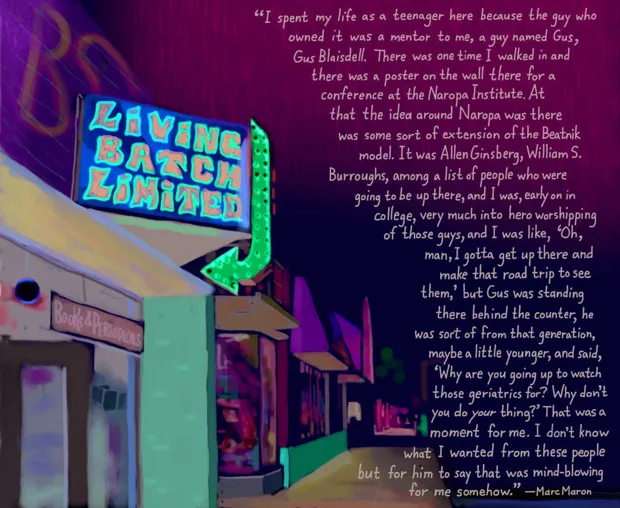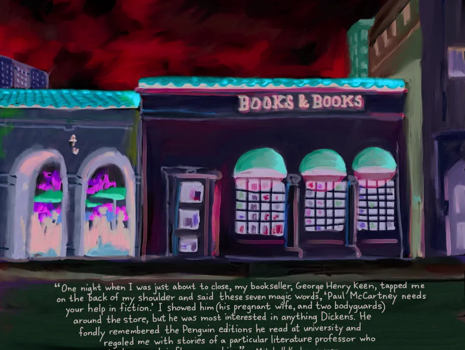 刘易斯的回忆是鲍勃·埃克斯坦的插图集中的75个故事之一, 来自世界上最伟大的书店的脚注:书籍购买者、书商和书籍爱好者的真实故事与失落时刻(22美元,企鹅随机出版社)。为了编纂这本书, 埃克斯坦,一位《纽约客》的漫画家,向全球的朋友和熟人征集了关于心爱书店的故事。他色彩丰富、印象派风格的画作上覆盖着店主或常客的奇特轶事。