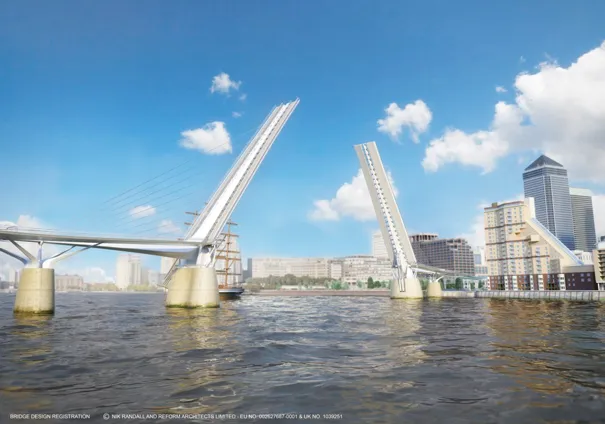 汗市长的三项提议来解决这一情况是一个混合的结果。其中一项是跨河的额外轻轨连接(上图中的链接四),虽然非常受欢迎,但并不特别开创性。另一项,如上图中的链接一所示,是一座无车的 平衡桥,非常实用(在笔者看来)也有一定的美感。它将连接 金丝雀码头 区域——一个办公密度极高的地区——与南岸,这里满是最近建成的公寓,许多金丝雀码头的工作人员现在居住在这里。预计成本为8800万英镑(1.12亿美元),看起来相当划算。