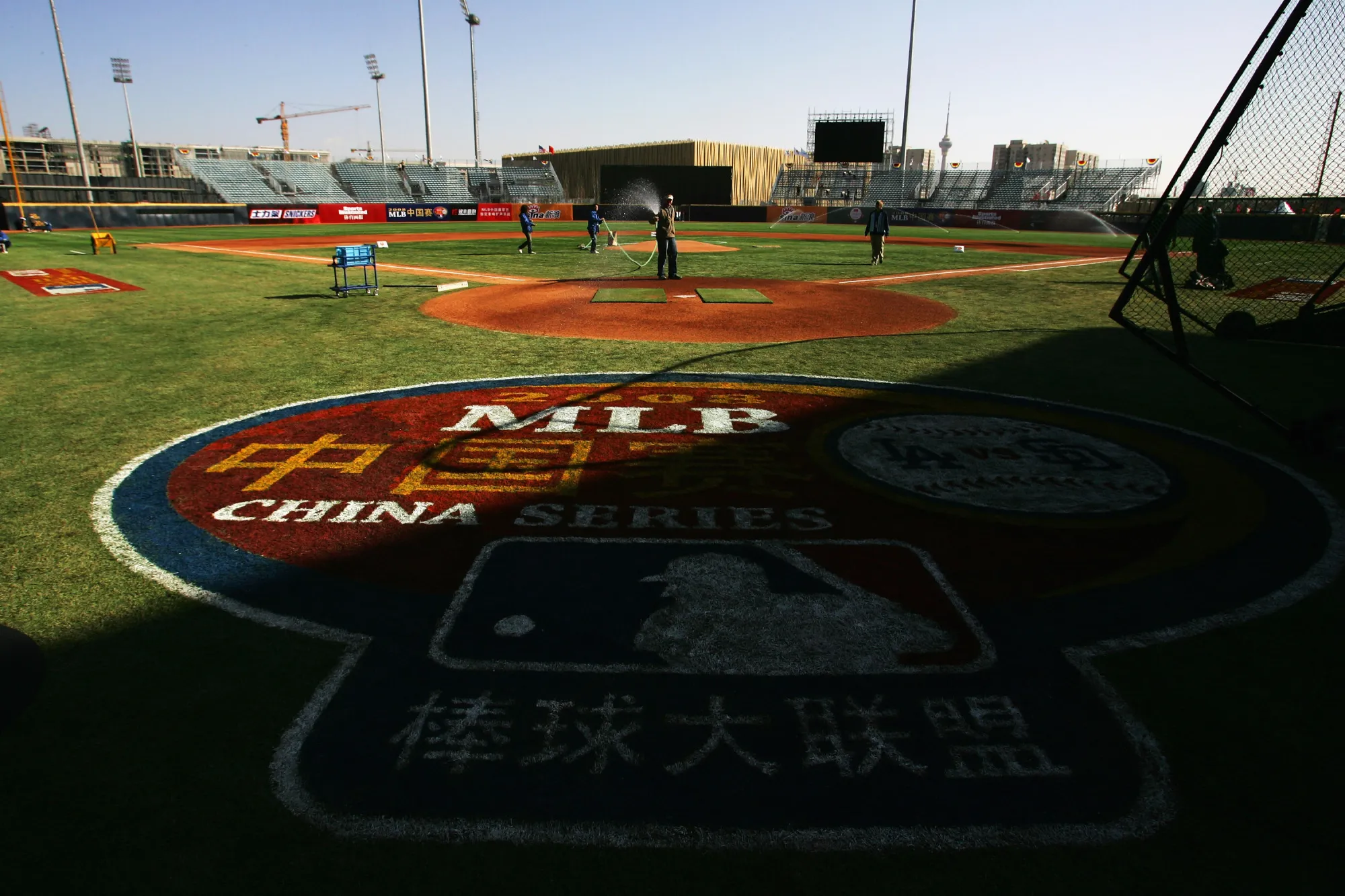 2008年3月15日,洛杉矶道奇队与圣地亚哥教士队在北京比赛前的准备工作。