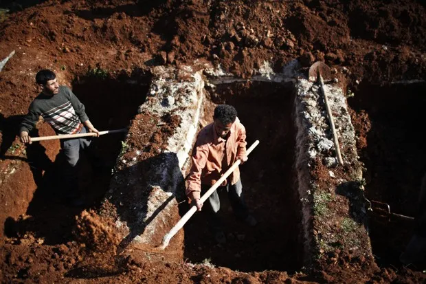 男人们为阿勒颇未来的伤亡挖掘坟墓。阿赫迈德·贾达拉/路透社在邻国为叙利亚人建立墓地也是一个挑战。虽然难民们逃避了直接的暴力,但大多数人生活在极端贫困中,死亡率高于东道国人口。例如,在黎巴嫩的贝卡谷地,该国的100万叙利亚难民中,超过三分之一生活在这里,许多城镇的墓地在新居民涌入之前就已经接近满员。当被黎巴嫩当局拒绝或要求支付他们无法承受的高额费用时,难民们已承认在夜间秘密地将他们的死者埋葬在墓地或其他地方。