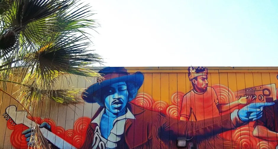 这幅壁画位于加利福尼亚州萨克拉门托的第16街和百老汇,描绘了吉米·亨德里克斯。百老汇是一条历史悠久的街道,在萨克拉门托的发展中扮演着复杂的角色。贾尼斯·玛丽·福特/CC BY 2.0“定义美国的十条街道,” Curbed