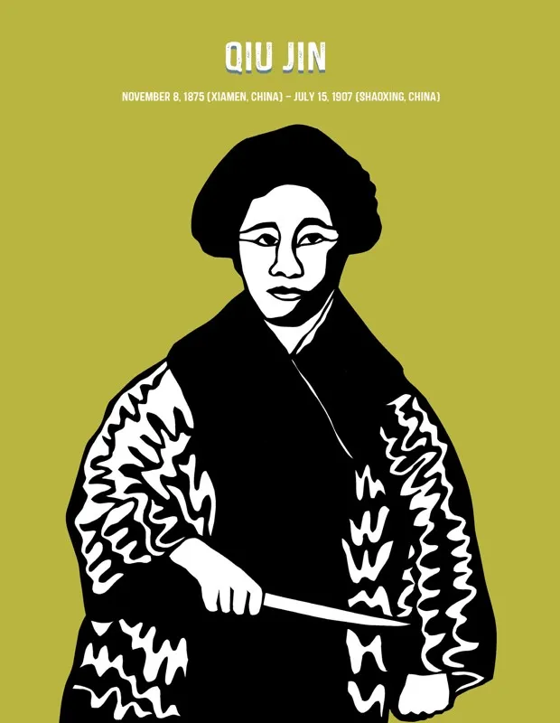 秋瑾于1906年在中国创办了一本女性主义杂志,并在次年被处决。版权 2016 由米里亚姆·克莱因·斯塔尔经许可转载自 全球女性先锋*,作者凯特·沙茨,插图米里亚姆·克莱因·斯塔尔,版权 (c) 2016。由企鹅随机出版社的十速出版社出版。*
