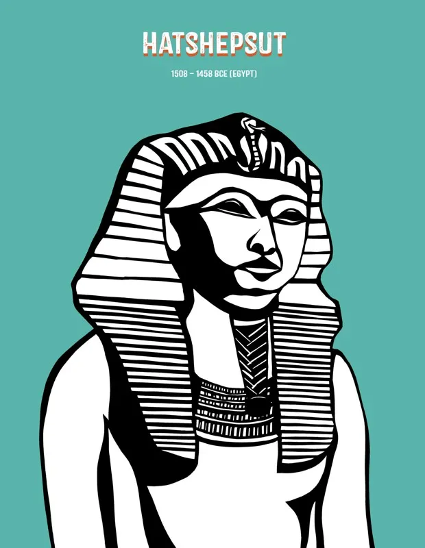 哈特谢普苏特自称法老,并担心她的遗产会消失。版权 2016 由米里亚姆·克莱因·斯塔尔这种被抹去或遗漏的风险是这本书的催化剂。“我们听说过的女性的领域随着时间的推移变得越来越狭窄,”施茨说。“人们可以说出19世纪的10位著名女性,也许能说出前一个世纪的四位,而在中世纪时期则更加有限。”这本书通过米里亚姆·克莱因·斯塔尔的大胆剪纸插图与简短的传记相结合,这些插图受到激进主义小册子和木刻技术的启发。