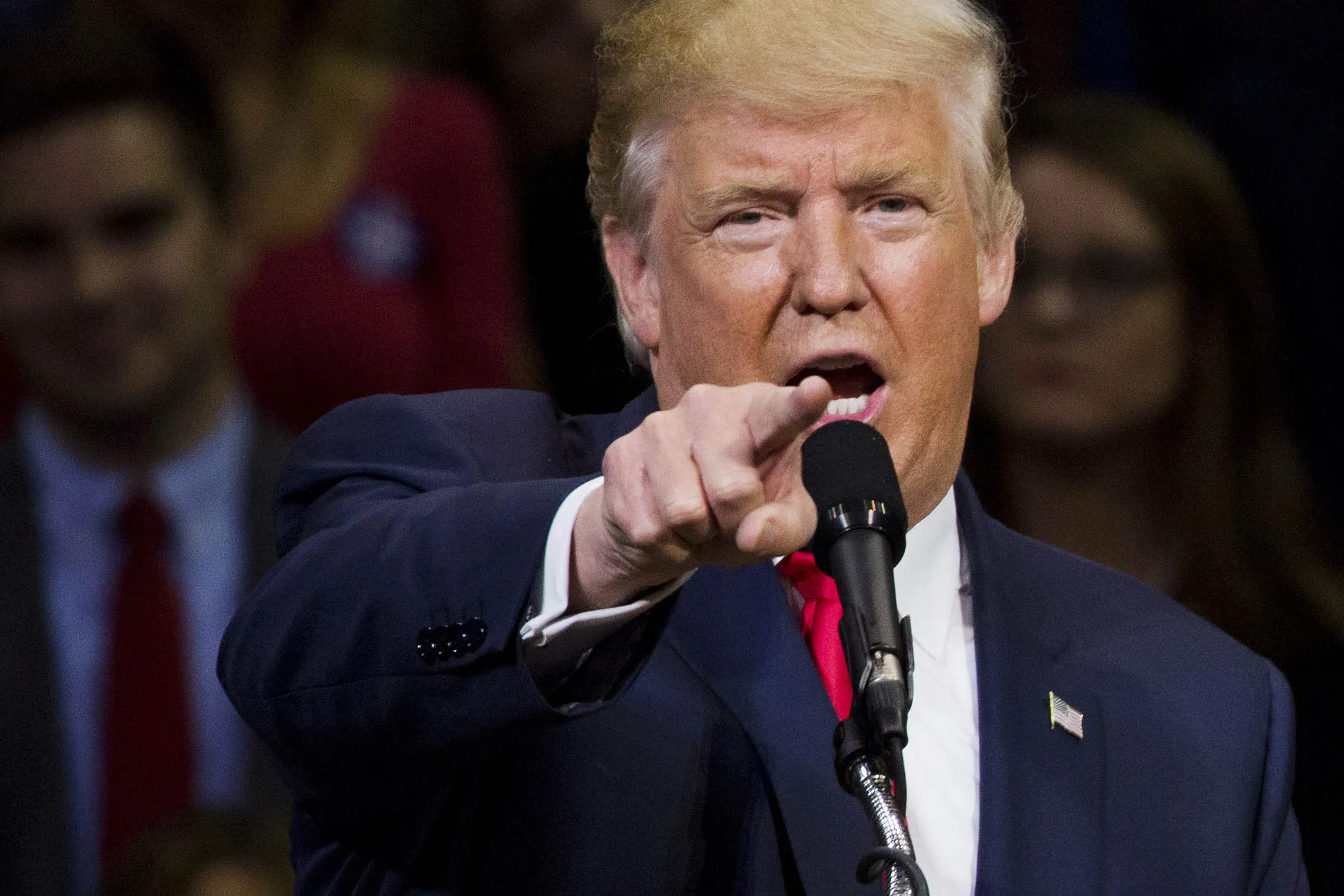 唐纳德·特朗普在宾夕法尼亚州威尔克斯-巴里的莫希根阳光竞技场的集会上发言,时间是10月10日。