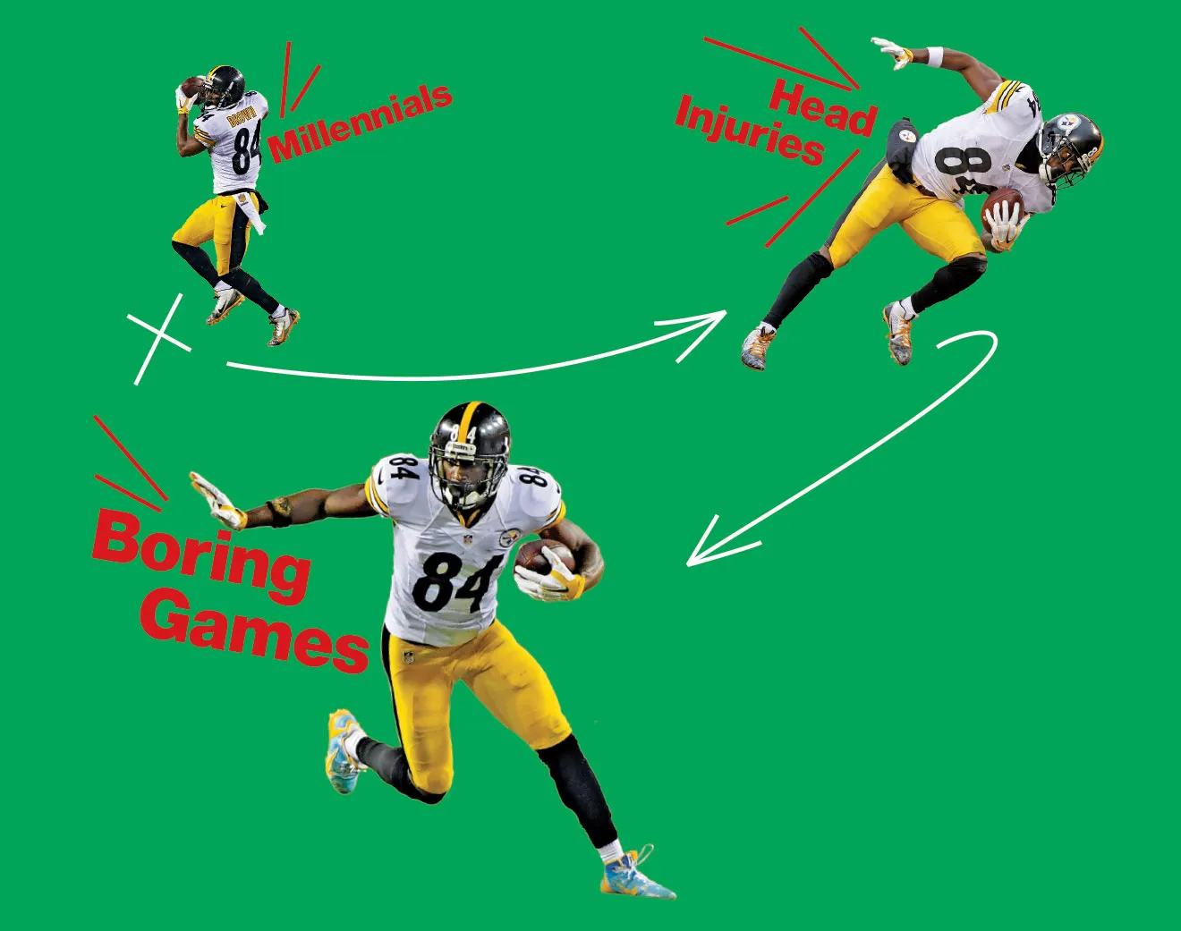 在忠实的球迷中,还有许多其他抱怨。铲球质量差。比赛时间太长。联盟以传球为主,但优秀的传球手稀缺。通过打击达阵庆祝,联盟削弱了这项运动的乐趣。在十月,亚利桑那红雀队与纽约喷气机队之间进行了一场特别乏味、罚球频繁的比赛时,ESPN体育播报员肖恩·麦克唐纳在某个时刻做了每个不满球迷都会做的事:他指责那些爱吹哨的裁判。“如果你在寻找NFL收视率下降的原因,这可没有帮助,”他在第三节的一个痛苦间歇中说。“这场比赛的裁判方式是没人想看的。”