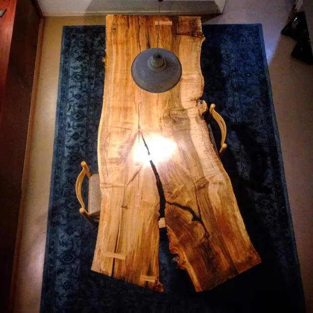 确实,这些缺陷使Esselstyn兄弟的家具独特而有趣。例如,一张长椅的座椅后面突出一个电击装置,而其他作品展示粗糙的边缘和不规则的形状。这些异常并没有阻止康涅狄格州的公司和机构委托他们的作品。Ted和Zeb为纽曼公司总部制作了会议桌,并为东哈特福德图书馆制作了墙柱。然而,他们的主要业务是与那些在自己财产上失去心爱树木的个人合作。“我们有客户在我们面前为失去而哭泣,”Ted说。“我们通过让树木继续生存来减轻打击。”