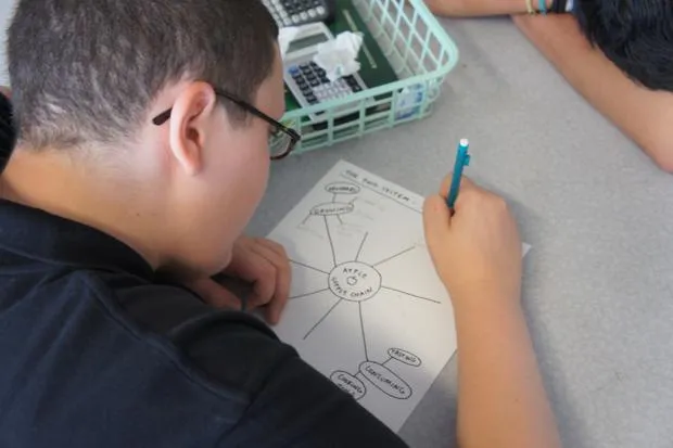 “我引入食品系统课程的主要目的是让孩子们开始观察系统及其相互关系。地图是可视化的最简单方式,”丹尼尔斯稍后告诉我。“我一直在教不同年级的学生,我发现他们没有被教导如何绘制这样的想法。他们不知道这个国家和世界的地理。当你谈论我们的农业系统对国家和世界的影响时,常常会引起很多困惑。”