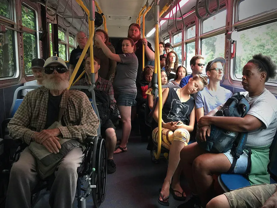 杰弗里·希勒越来越多的人上了公交车。他们面无表情,盯着手机、书籍、前面的座位和窗外,但很少看向同伴的脸。孤立感弥漫,直到你听到一个陌生人兴奋地说:“嘿,你好吗?很高兴再次见到你!”