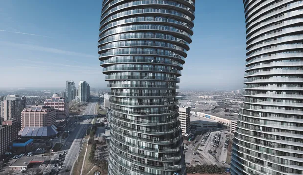 绝对塔,2006–2012,加拿大密西沙加。照片:汤姆·阿尔班多伦多地区的这一部分(密西沙加)近年来经历了很多增长,但一直显得相当不起眼。这个项目背后的开发商是否要求有一个身份的东西?