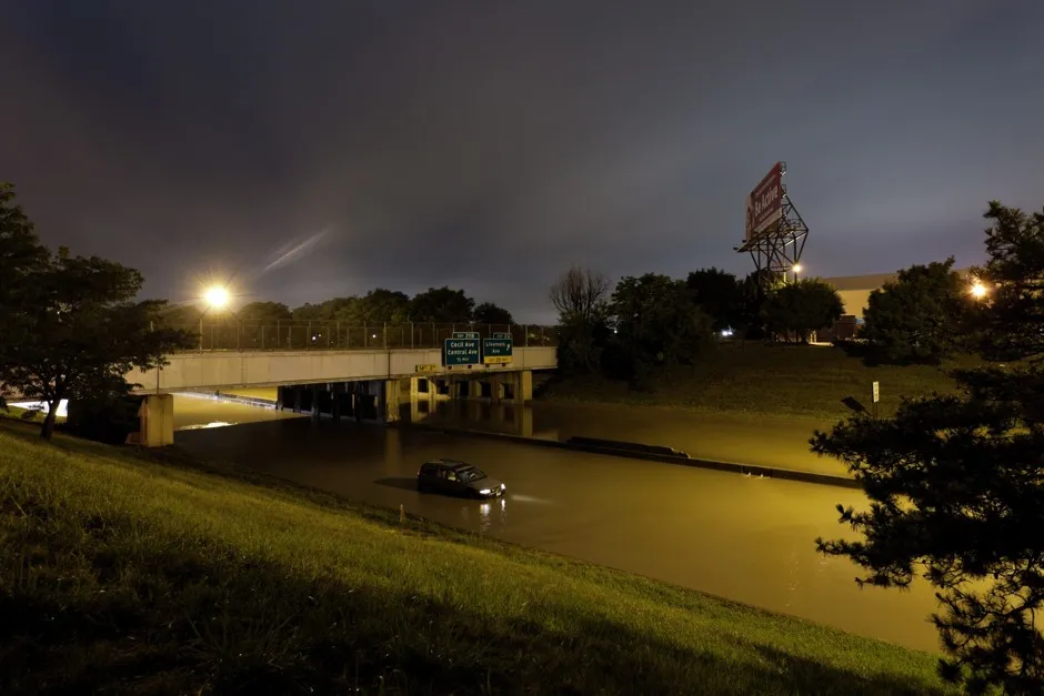 “埃德塞尔·福特河,超级月亮下的污水冲击,2014"斯科特·霍金当他无法入睡时,斯科特·霍金手持相机游荡在底特律。这位摄影师的某些深夜影像呈现出梦游般的特质:它们看起来模糊而令人不安,场景中你的大脑可能会拼凑出足够的偏离细节以感到诡异。在其中一幅中,一辆车在浑浊的水中艰难前行,淹没了高速公路并弄脏了旁边的草地。车灯在前方勉强照亮;道路上空无一人,很难判断是否有任何人在驾驶。在背景中,有一个广告牌命令路过的人“保持活跃”。这张照片拍摄于2014年,那一年底特律的老化基础设施遭遇了历史性的暴风雨冲击,淹没了州际公路并造成了$10亿美元的损失。霍金的照片描绘了一台发动机和一座停滞不前的城市。令人好奇的是,艺术家是否希望观众思考该追究谁的责任:是否有人没有积极工作以拯救这个潮湿的城市,或者根本没有防止它洪水泛滥?