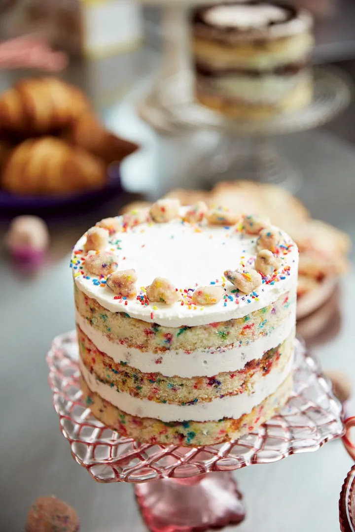 她每年假期期间至少会推出一种新产品。她最新的产品是草hopper蛋糕,向1950年代未参加晚宴派对的人们所不熟悉的薄荷味奶油派致敬。整个蛋糕用浓密、甜美的巧克力饼干和巧克力屑装饰,内部有奶油薄荷馅。“这个蛋糕庆祝了薄荷饼干和冰淇淋如此美味的原因,”她说。Milk Bar将在仅仅两周的销售中制作超过500个这样的蛋糕。