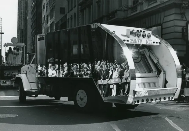 米尔尔·拉德曼·乌克尔斯,“卫生庆典:纽约市艺术游行的最终盛典,第一部分:社会镜子,”1983年。与DSNY合作创作。艺术家提供米尔尔·拉德曼·乌克尔斯的维护艺术将在皇后博物馆展出至2017年2月19日。