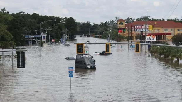 八月份极端降雨后,巴吞鲁日的一条街道变成了一条河。国家海洋和大气管理局