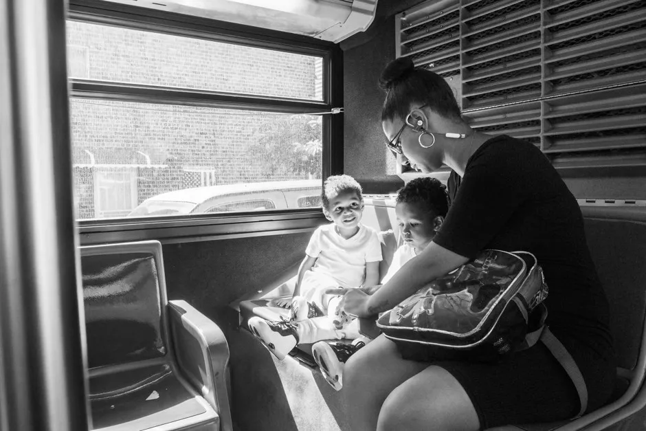 辛从布朗克斯带着两个儿子前往赖克斯岛探望她的男朋友,他已经等待审判20个月。萨尔瓦多·埃斯皮诺萨大约六个月前,摄影师 萨尔瓦多·埃斯皮诺萨 开始花很多时间乘坐Q100公交车穿越纽约的皇后区。该公交车从长岛市的皇后广场出发,向北穿过阿斯托里亚,最终到达赖克斯岛,这个位于东河的监狱综合体。
