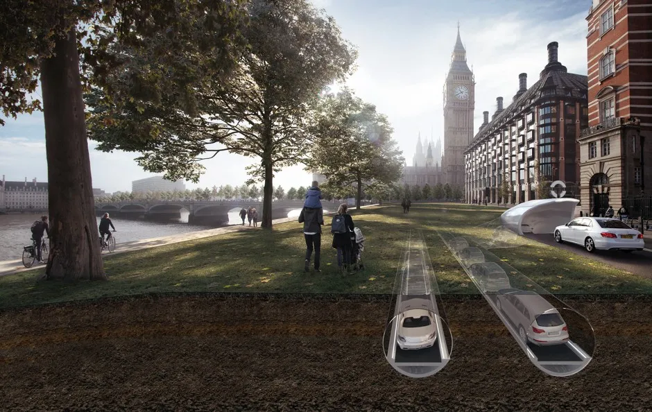 一位艺术家对“汽车堆”的渲染,其中未使用的车辆将被分类和存储。PLP建筑事务所在我写关于几个 有前景的想法 未来交通的同一周,以及 一个注定失败的想法,又一个提案因其大胆而引起了头条新闻。这个提案叫做 CarTube,设想了一种地下管道网络,将无人驾驶汽车引导到目的地,让地面街道留给行人、自行车骑行者,以及可能仍由微不足道的人类驾驶的那些古老汽车。