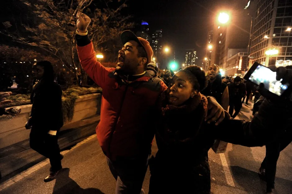 抗议者在2015年11月24日星期二在芝加哥进行抗议,支持17岁的拉奎恩·麦克唐纳,他在2014年10月被警方致命射杀。保罗·比蒂/AP在10月,ACLU 发布的电子邮件显示,一家名为Geofeedia的社交媒体监控公司曾追踪 黑人的命也是命 抗议者的账户,以服务执法客户。社交媒体监控的揭露引发了头条新闻,并导致Twitter、Facebook和Instagram 切断了Geofeedia对用户数据的批量访问(这反过来促使该公司 裁减了一半的员工)。自那时以来,另外两家 社交媒体监控公司,Snap Trends和Media Sonar,因类似的监控活动失去了Twitter数据访问权限。
