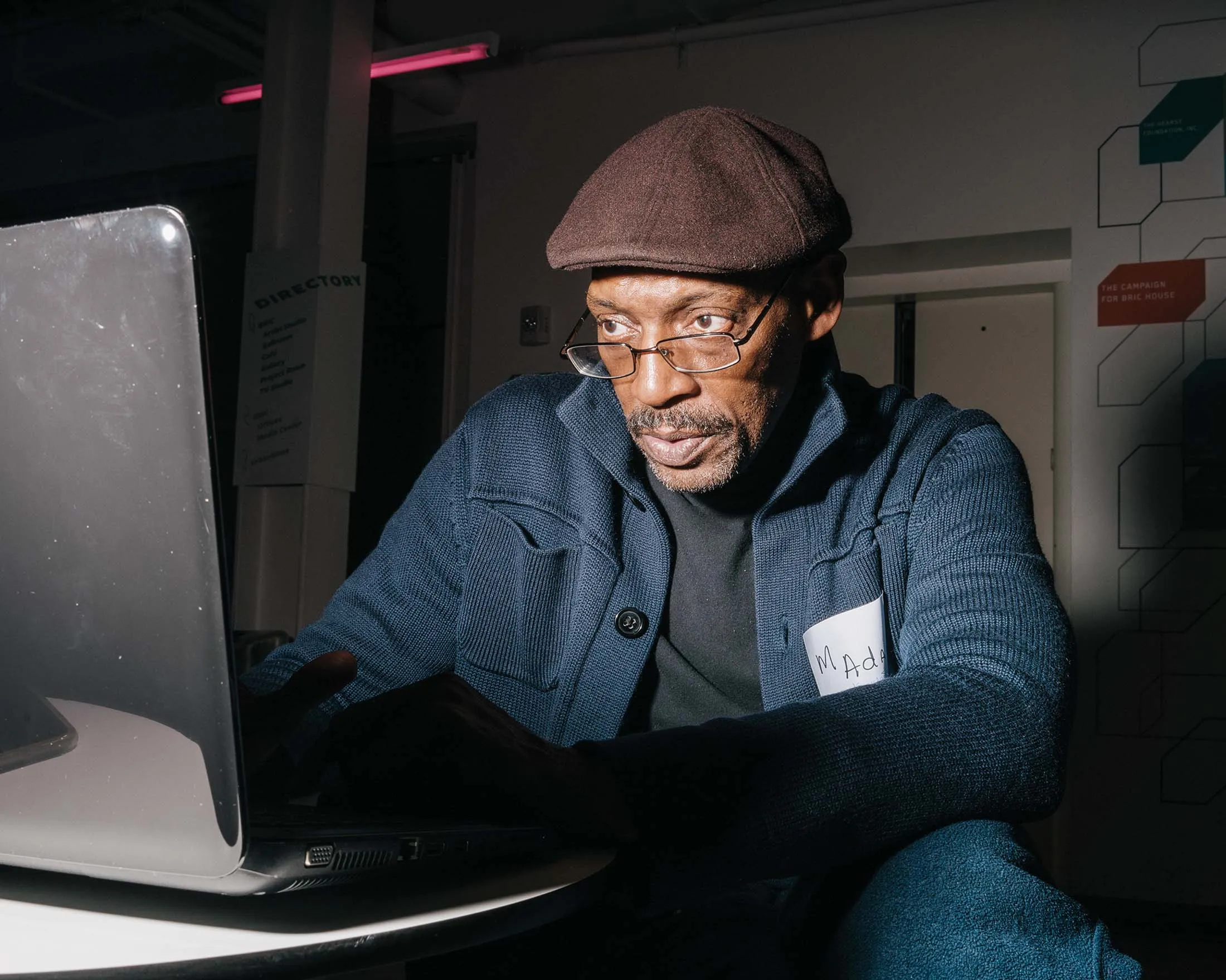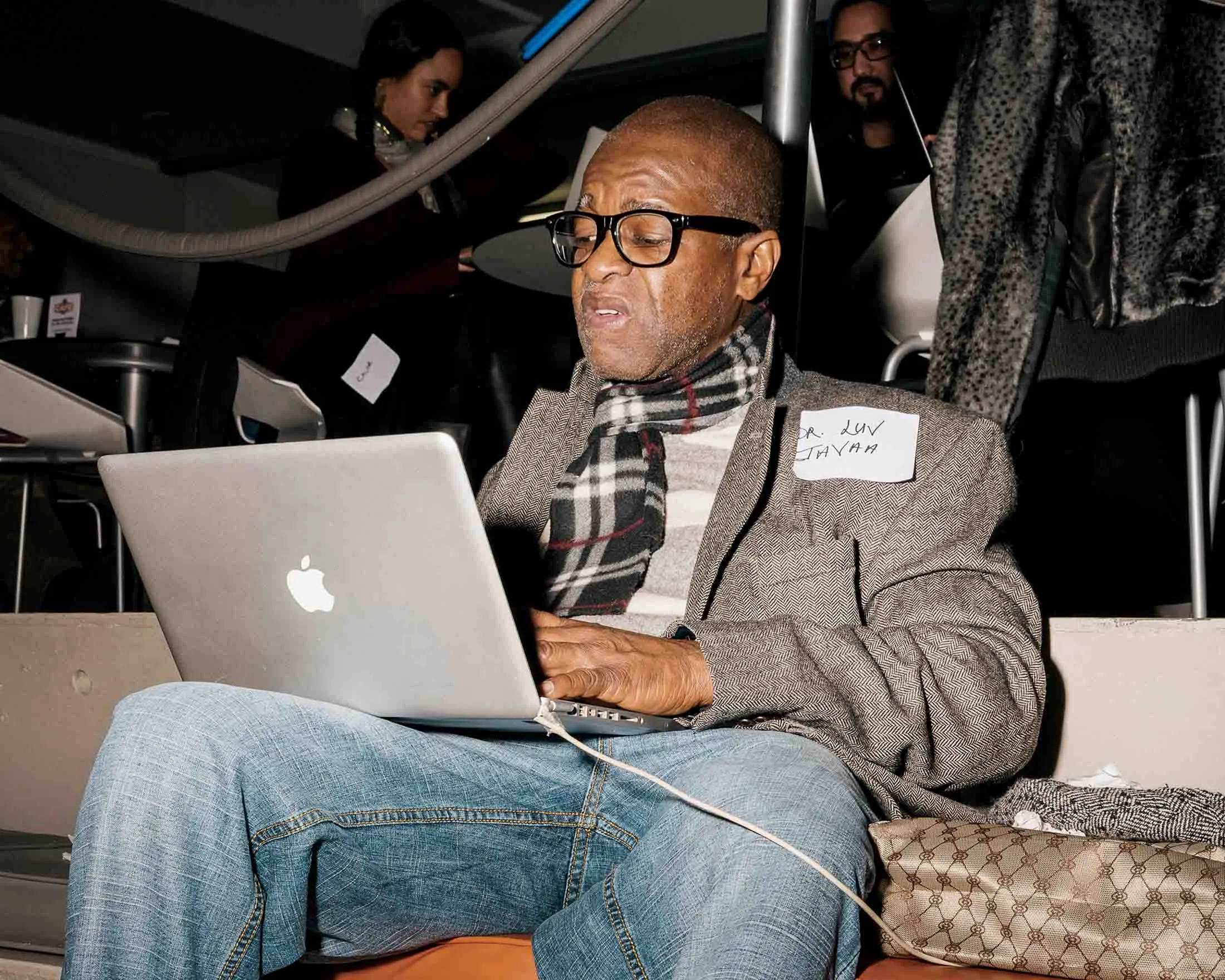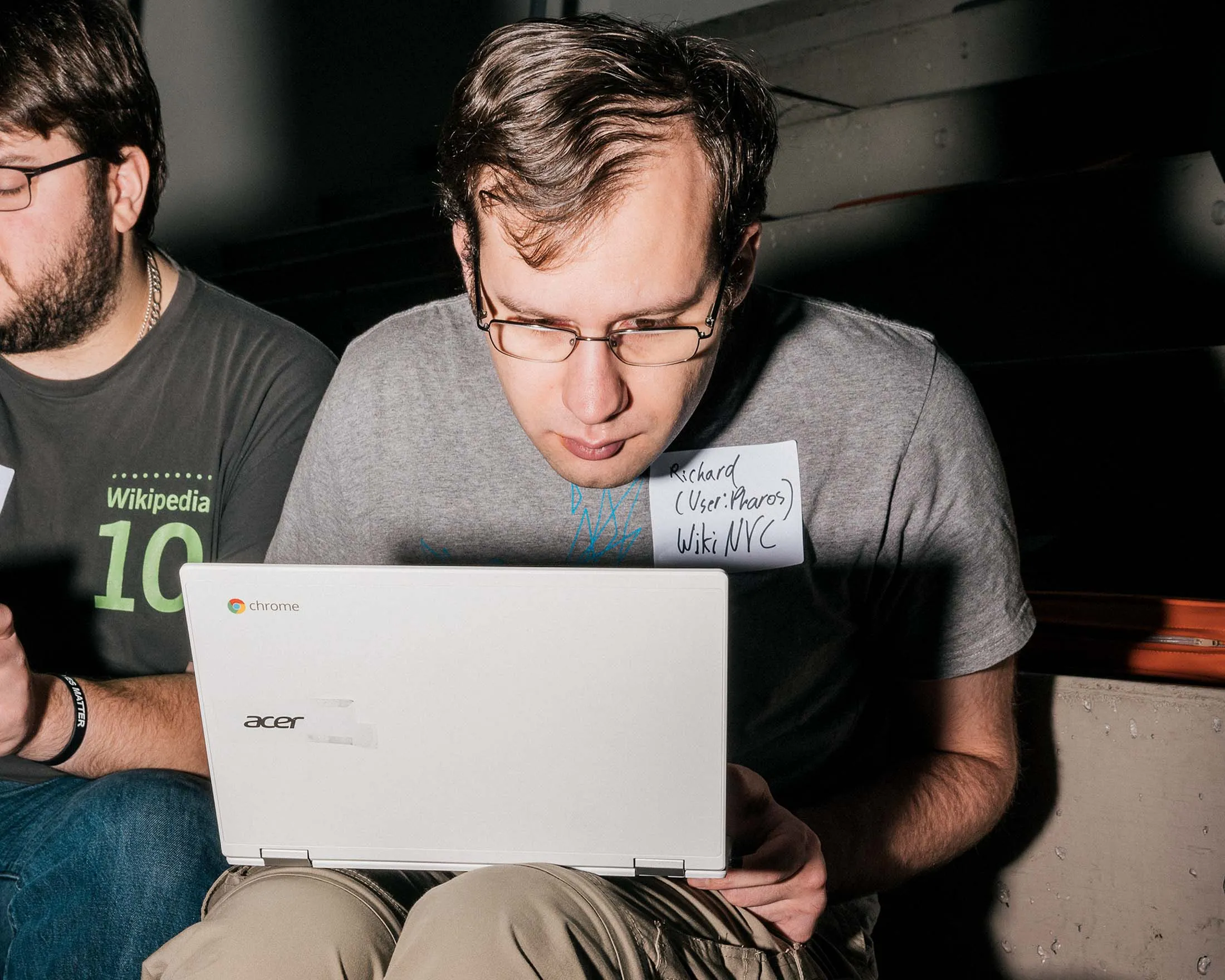克林顿·华莱士(又名爱博士)于12月10日在布鲁克林参加维基百科编辑马拉松。