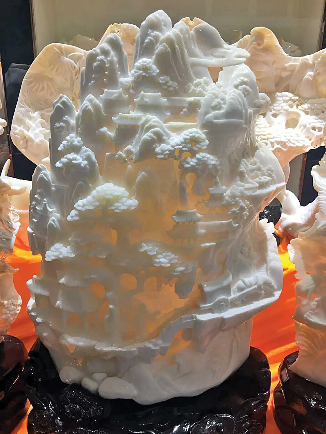 习近平没有提到巨型蛤蜊,但当地的贝壳产业成为政府慷慨施惠的最大、最明显的受益者:蛤蜊加工厂的数量激增至100多家。家庭将他们的街边住宅改造成商店;在主要干道富港街上,300家商店中有三分之二出售蛤蜊壳雕刻。那里有卧云中的佛陀;多臂的观音,慈悲女神;复杂的山水风景;甚至还有形状像象牙獠牙的蛤蜊壳,具有讽刺意味。游客们开始从附近博鳌的海滨度假胜地前来,博鳌每年举办一次类似达沃斯的峰会,而中间商则大量购买以在线销售这些雕刻。