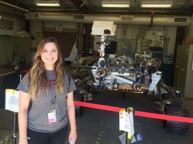 莎拉·凯伊与探测器合影莎拉·凯伊提供摩根·利希·凯布尔,另一位成为JPL员工的前实习生,表示在JPL的实习“彻底改变了[她的]生活。”她当时住在佛罗里达州,正在攻读化学本科学位,当她被接受到该项目时。实习期间,她研究如何检测细菌孢子——一种能够在极端环境中生存的生命形式。