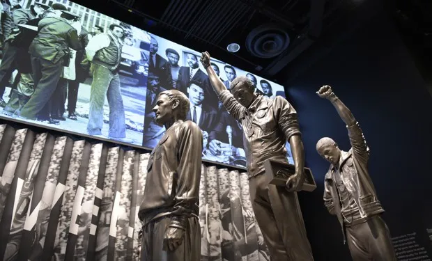1968年奥运会黑人力量敬礼的雕像在国家非洲裔美国人历史文化博物馆展出。苏珊·沃尔什/AP博物馆正在积极发展和收购。它与许多捐赠者建立了深厚的关系,从企业到个人再到私人收藏家。这是否使得其他较小的非洲裔美国历史和文化博物馆更难继续运营?