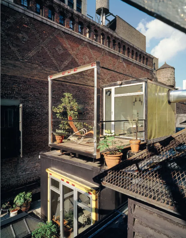 LOT-EK设计的Guzman顶层公寓“是通过改造一个机械室并在其上方增加一个带露台的紧凑卧室而创建的,整个结构位于曼哈顿31街的帝国大厦下方的屋顶上。”卡车集装箱、冰箱和报纸分发器作为建筑材料。Paul Warcol/TASCHEN这里的图像是奢华的图片——突破界限和无可挑剔的设计,同时也非常昂贵。但Jodidio写道,我们看到的屋顶也服务于公共目的。它们扩展了城市想象力,并在日益密集的世界中开启了空间使用的新视野。Jodidio写道,屋顶“是蓬勃发展的全球城市中新乐观的地方,是一个避难所和希望,是一个可以俯瞰大地的天空之岛。”