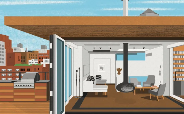由Ghiora Aharaoni设计的西村顶层公寓的绘图Boyoun Kim/TASCHEN随着城市空间变得越来越密集,开发在地面上层层叠叠地向上生长,越来越多的人将会有高处的朋友。