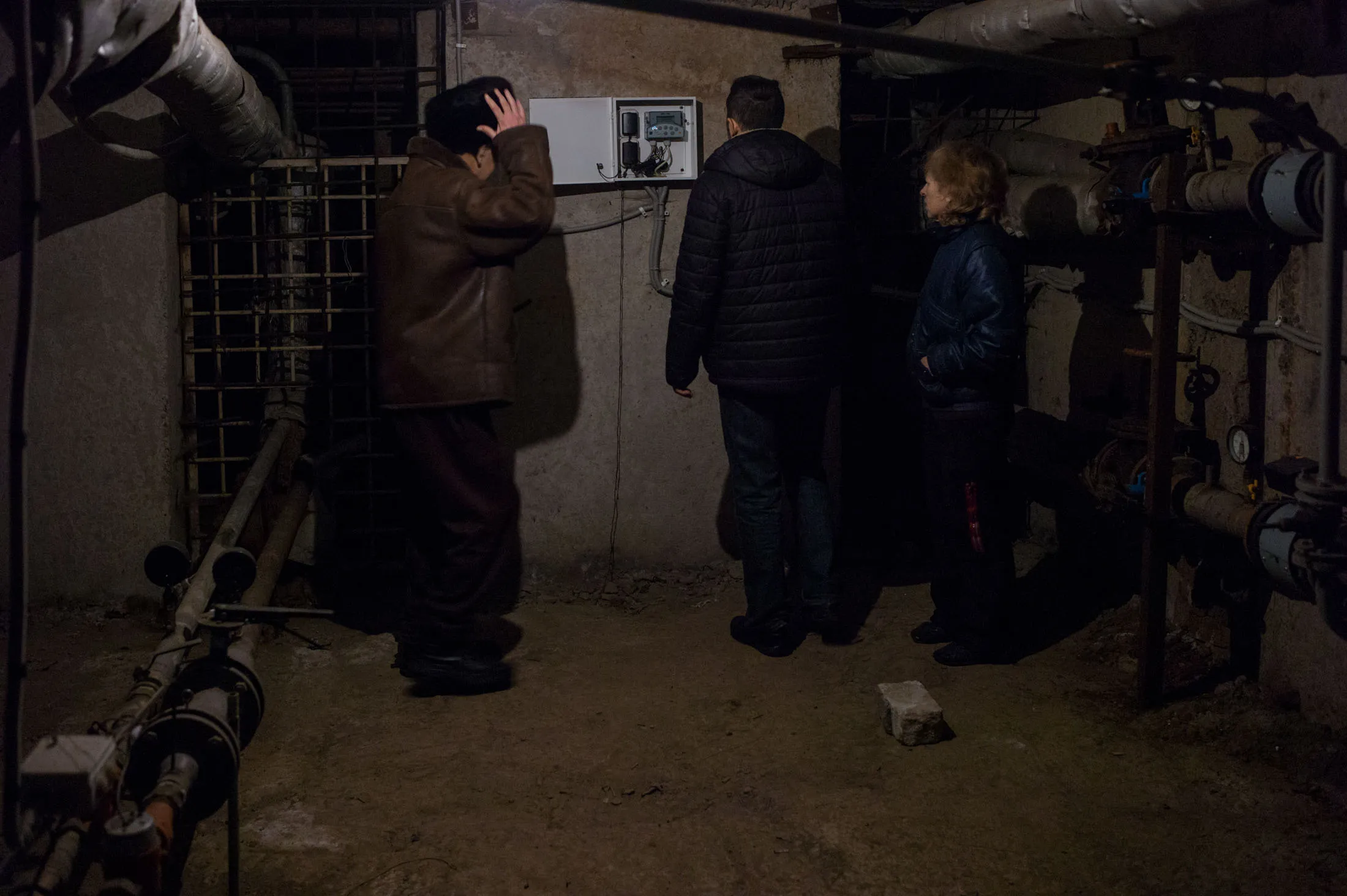 另一位邻居,火箭设计师谢尔希·赫尔曼,带访客进入他的地下室,展示通往建筑的热水管道。温度计显示进水温度为108华氏度,低于乌克兰冬季保持建筑适居所需的温度50华氏度。当水到达某些楼层时,已经变得冰冷。