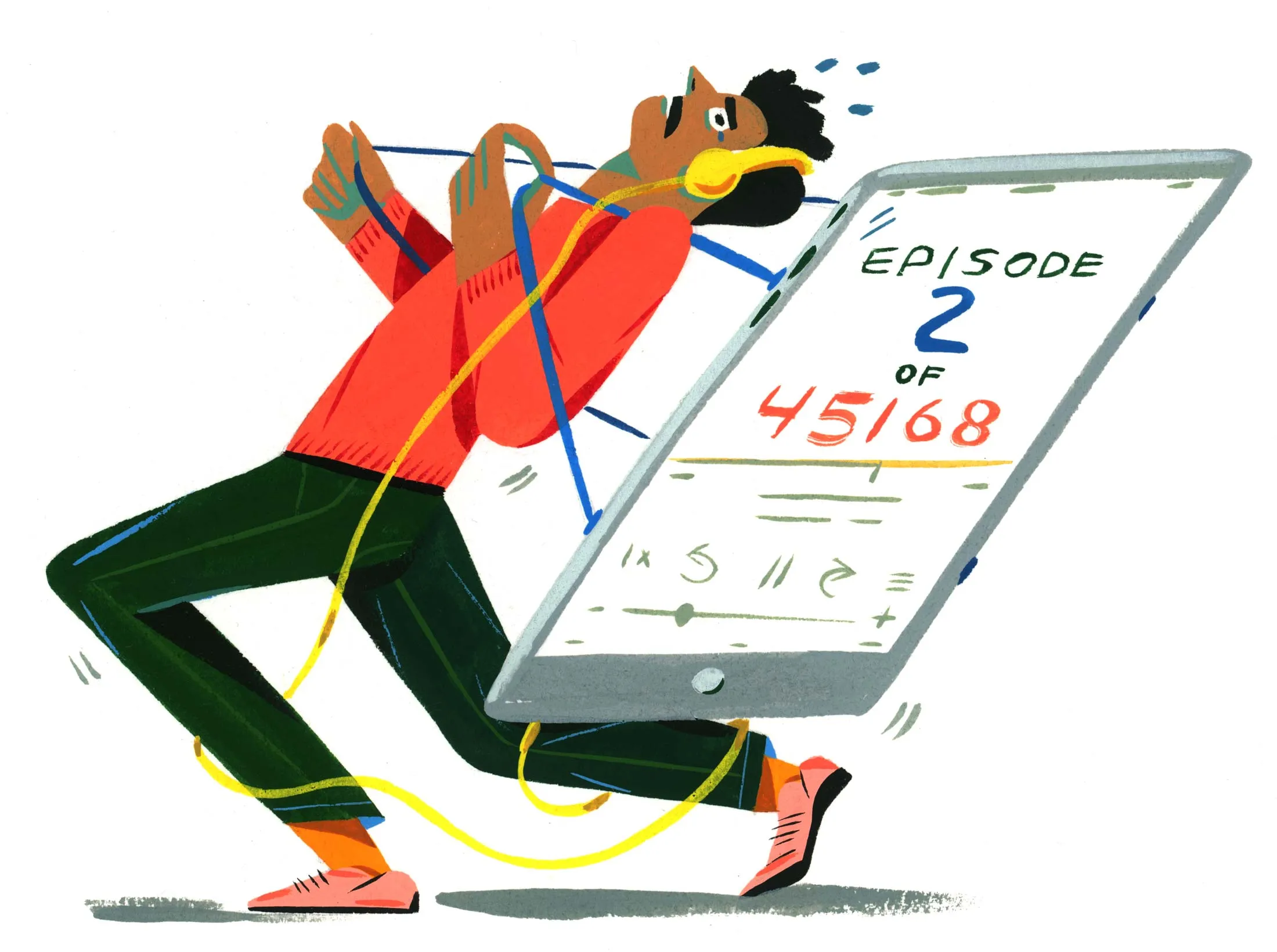 插图:Ping Zhu每天早上,在我把女儿送到托儿所并准备走回家的时候,我拿出手机,盯着那些未播放的播客。我是继续听 归乡,一个关于退伍军人的剧本惊悚片,还是跟上 Monocle 的 外交台 的全球新闻分析?我更想和那些虚构但太过真实的犹太祖母 Ronna & Beverly 一起笑,还是在 Jonathan Goldstein 的 重磅 中处理某人的不安的过去?