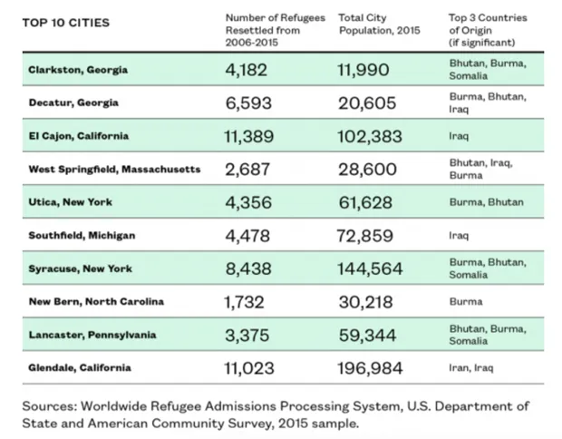 研究人员使用美国国务院的安置数据,列出了过去10年中相对于其规模接收最多难民的10个美国城市。然后,他们使用FBI数据集检查了这些社区的犯罪率。以下是入选的十个城市: