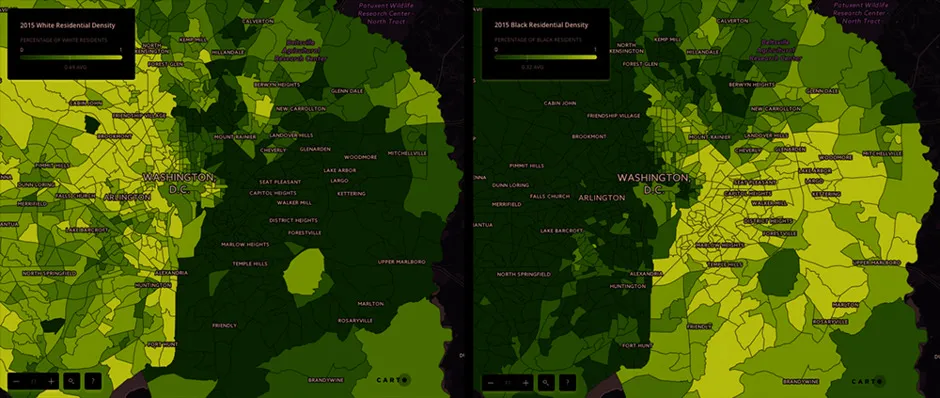 华盛顿特区的黑白地图:种族密度地图显示了该市极端的隔离模式。乔治·约瑟夫/城市实验室您的报告发现特许学校的隔离程度明显高于传统公立学校。为什么华盛顿特区的特许学校如此隔离,学校选择在防止该地区学校去隔离方面起到了什么作用(如果有的话)?