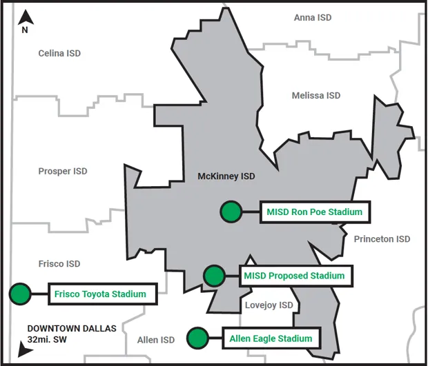 麦金尼学区 superintendent 麦克丹尼尔斯在 他告诉 达拉斯晨报时也重申了这一观点,“无论你来自哪里,你都会看到体育场。这说明了一切。”