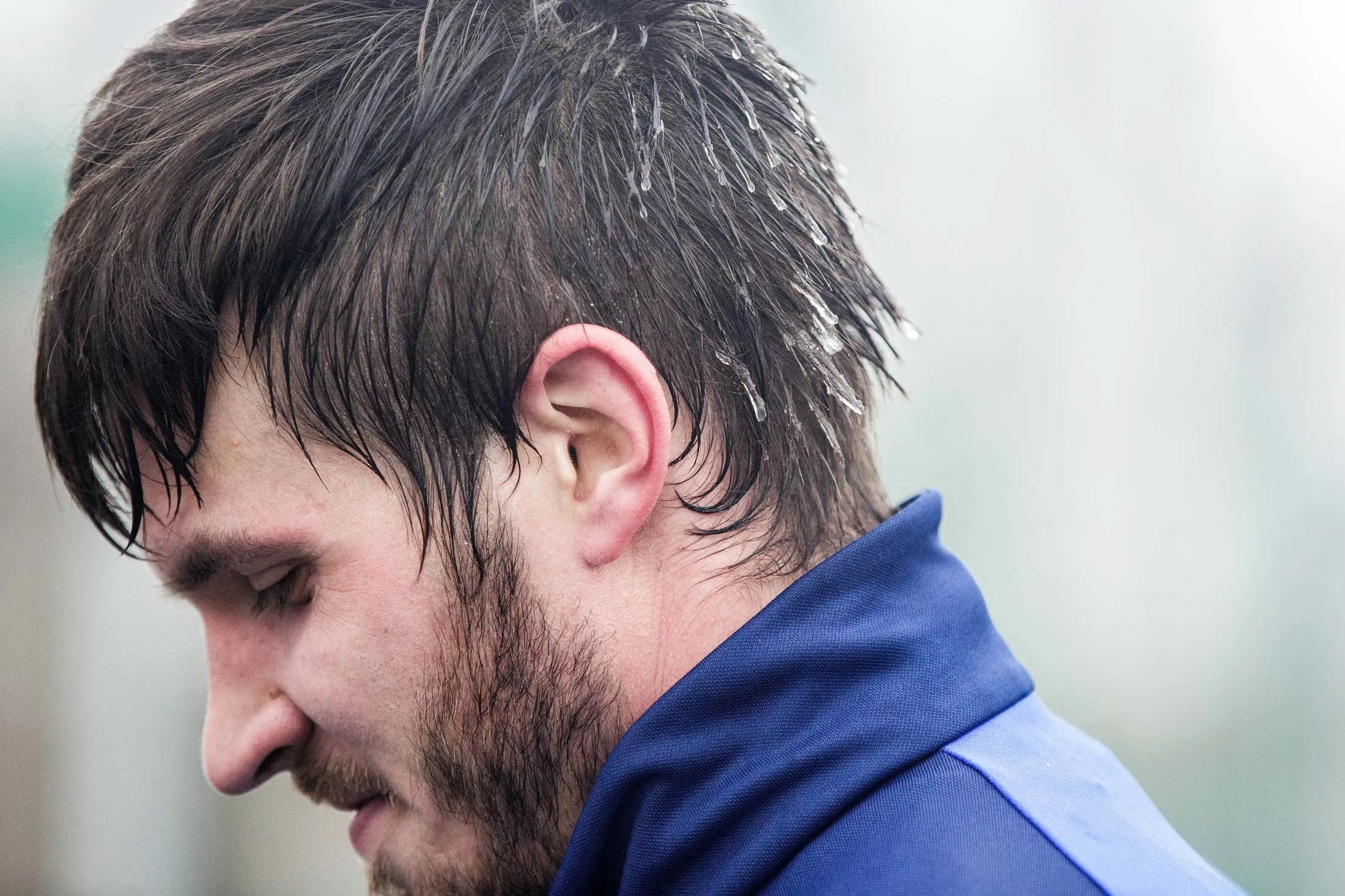 FC STK Samorin足球俱乐部的中场球员Csaba Kralik的头发上结满了冷冻的汗珠。摄影师:Lisi Niesner/Bloomberg在下半场对阵匈牙利的莫索纳马尔雅尔之前,威廉在人工草坪上做好了-8摄氏度(17华氏度)的准备。球员们惊讶地盯着Csaba Kralik的后脑勺,中场球员的汗水已经结冰,头发上悬挂着冰柱。