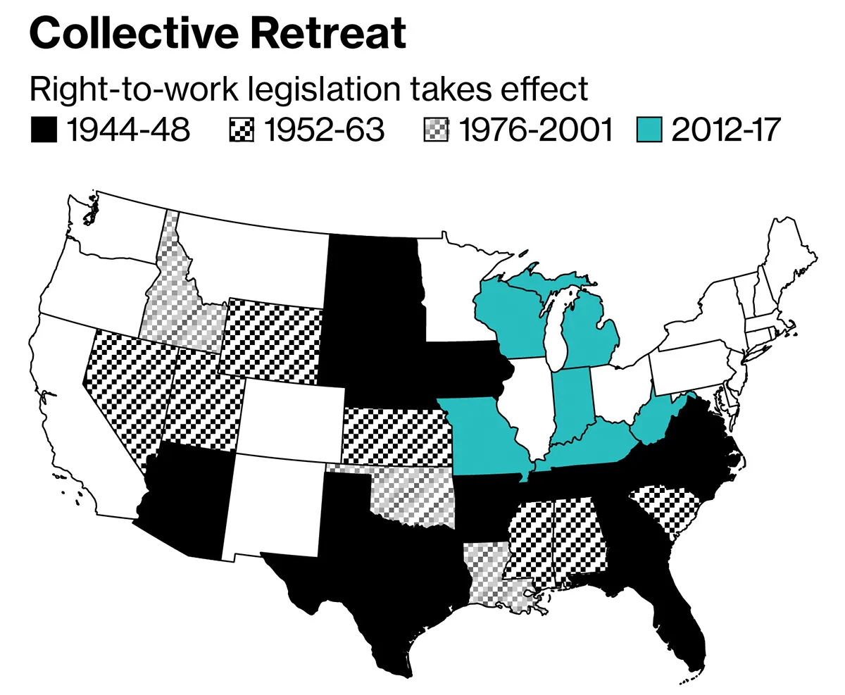 工会正在失去数十年来的“工作权利”斗争 - 彭博社