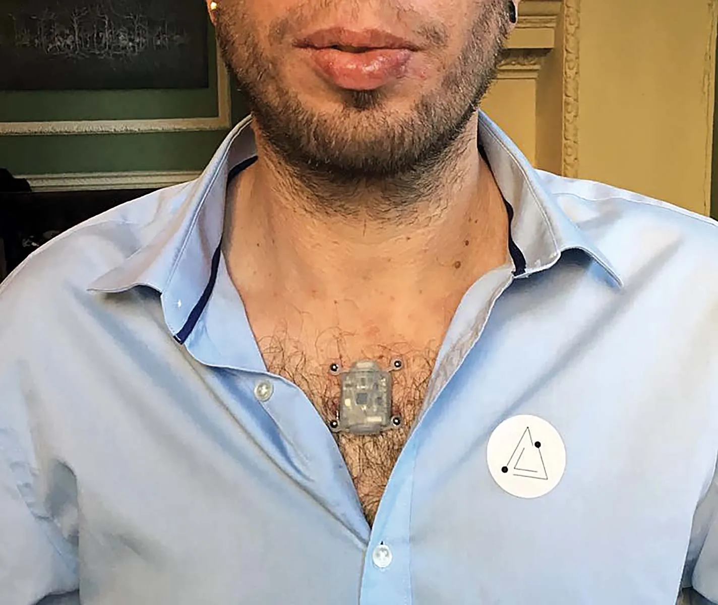传感器本身是一个检测磁场的指南针芯片,易于拆卸。困难的部分是将两个口袋大小的钛杠铃安装到佩戴者的胸部,就像穿刺一样。当皮肤愈合,通常在一个月或两个月后,涂有硅胶的北感就滑入植入物上。巴比茨表示,传感器设计允许空气自由流通,避免皮肤刺激,并且是防水的。它显然没有哈比森的天线那么显眼,但它比初创公司北爪的脚踝套件更进一步,后者在面朝磁北时也会振动。