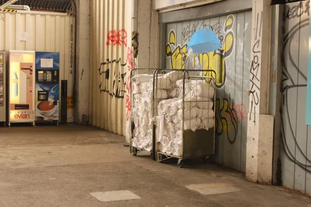 这里在香榭丽舍门的地点使其能够利用在帐篷城市时代现有的志愿者网络。他们帮助填补了在外面等待的人的空缺。每个大约20个避难所中有三到四人睡觉。其他人则在地面上铺开睡袋。在一个围栏外的牛奶箱里塞满了一双双运动鞋。