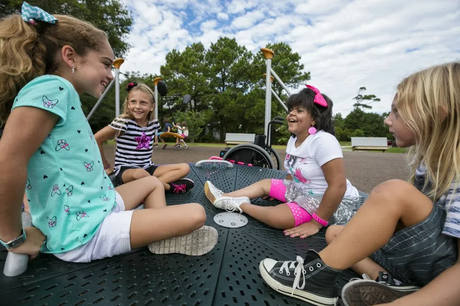 但是,如果残疾使得孩子更难参与游乐场的活动怎么办?如果一个空间仅配备不适合残疾儿童的滑梯和秋千,他们或他们的父母不太可能在那儿花费太多时间。