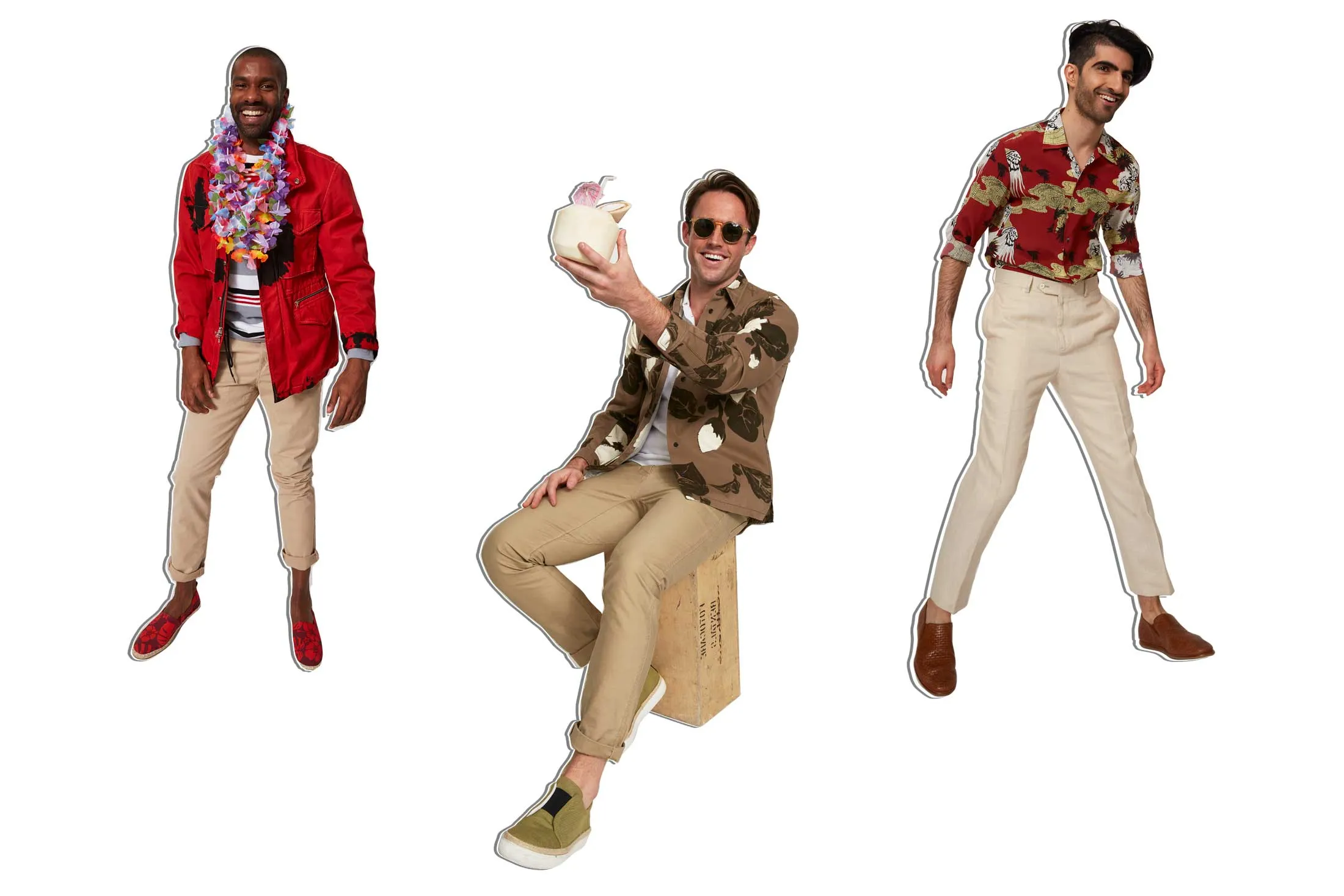 今天的热带风格全在于剪裁。选择单色和中性色的花卉图案,并融入细微的细节,如翻边腰带、编织乐福鞋,当然,还有无可挑剔的色调。