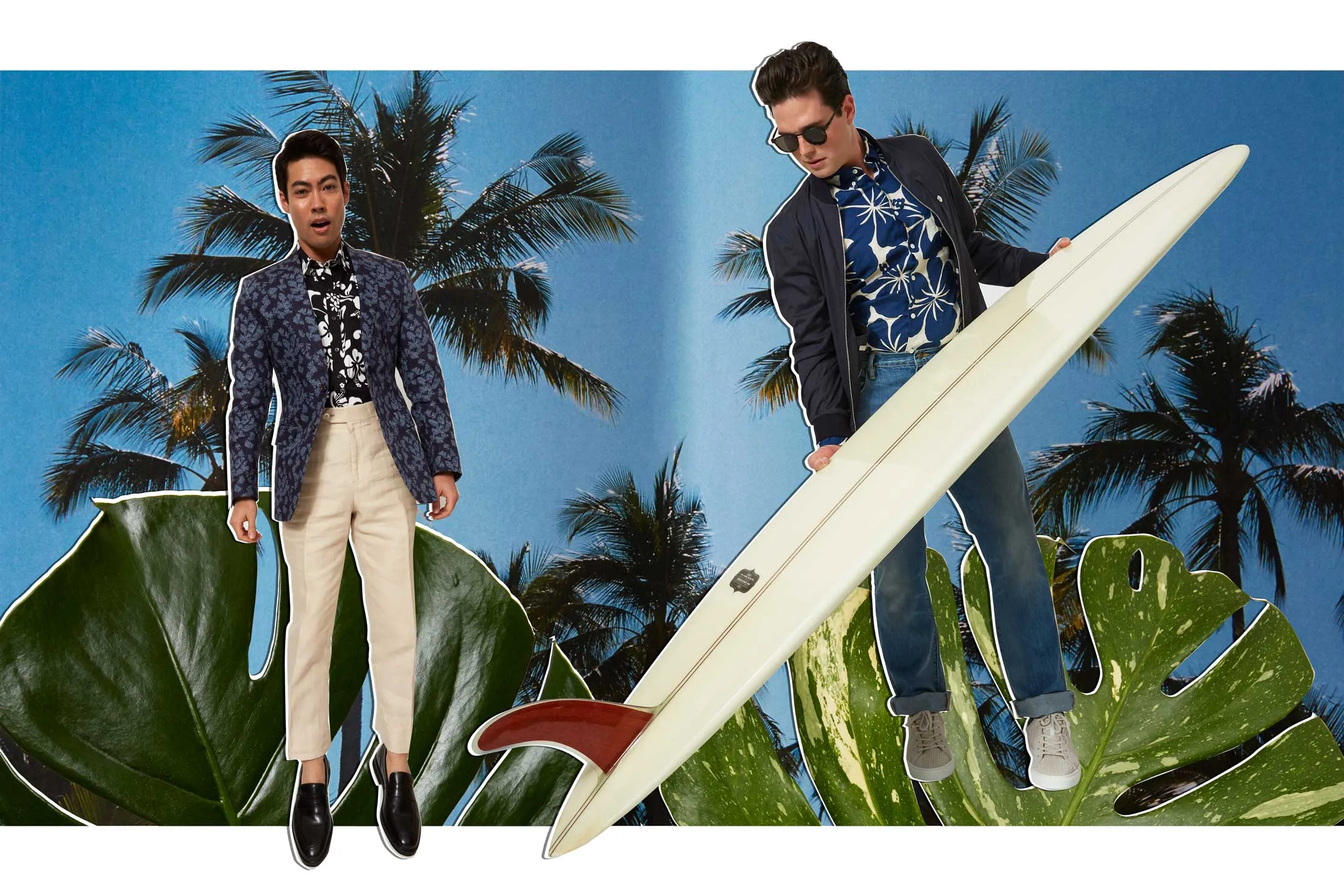 (从左) Todd Snyder 外套,价格面议;Todd Snyder,25 E. 26th St.,纽约。Ovadia & Sons 衬衫,$245;ovadiaandsons.com。Polo Ralph Lauren 裤子,$125;bloomingdales.com。Z Zegna 鞋子,$1,295;Ermenegildo Zegna,663 Fifth Ave.,纽约。Brunello Cucinelli 外套,$2,195;brunellocucinelli.com。David Hart 衬衫,$345;davidhartnyc.com。Vince 牛仔裤,$245;vince.com。Mykita 太阳镜,$599;mykita.com。Aquatalia 运动鞋,$495;aquatalia.com。摄影师:Eric T. White 为彭博商业周刊### 夏威夷十七-O