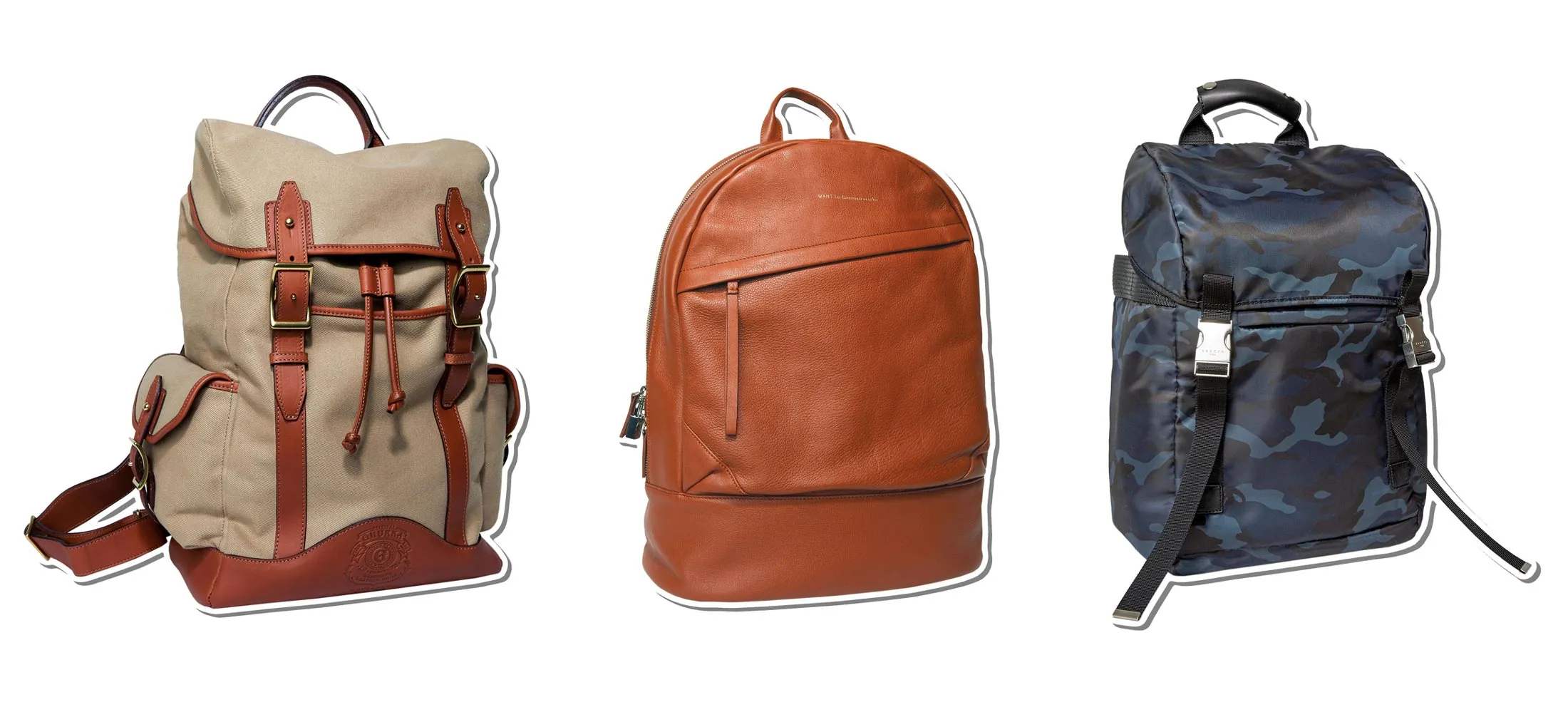 (从左侧) 帆布包: 带着这款适合野外探险的背包勇闯城市丛林。前面的带子有经典的扣环外观,但后扣和标签闭合设计使其快速开合。Ghurka Explorer No. 239 背包,$1,295;ghurka.com。日用包: 适合替代公文包,采用丰富的烟草色皮革,内部有多个口袋。Want Les Essentiels Kastrup 背包,$995;wantlesessentiels.com。迷彩包: 光滑的棉尼龙外壳和柔和的蓝色印花将帮助你在最热门的初创公司中融入。Sandro 迷彩背包,$295;us.sandro-paris.com。摄影师:Eric T. White 为彭博商业周刊