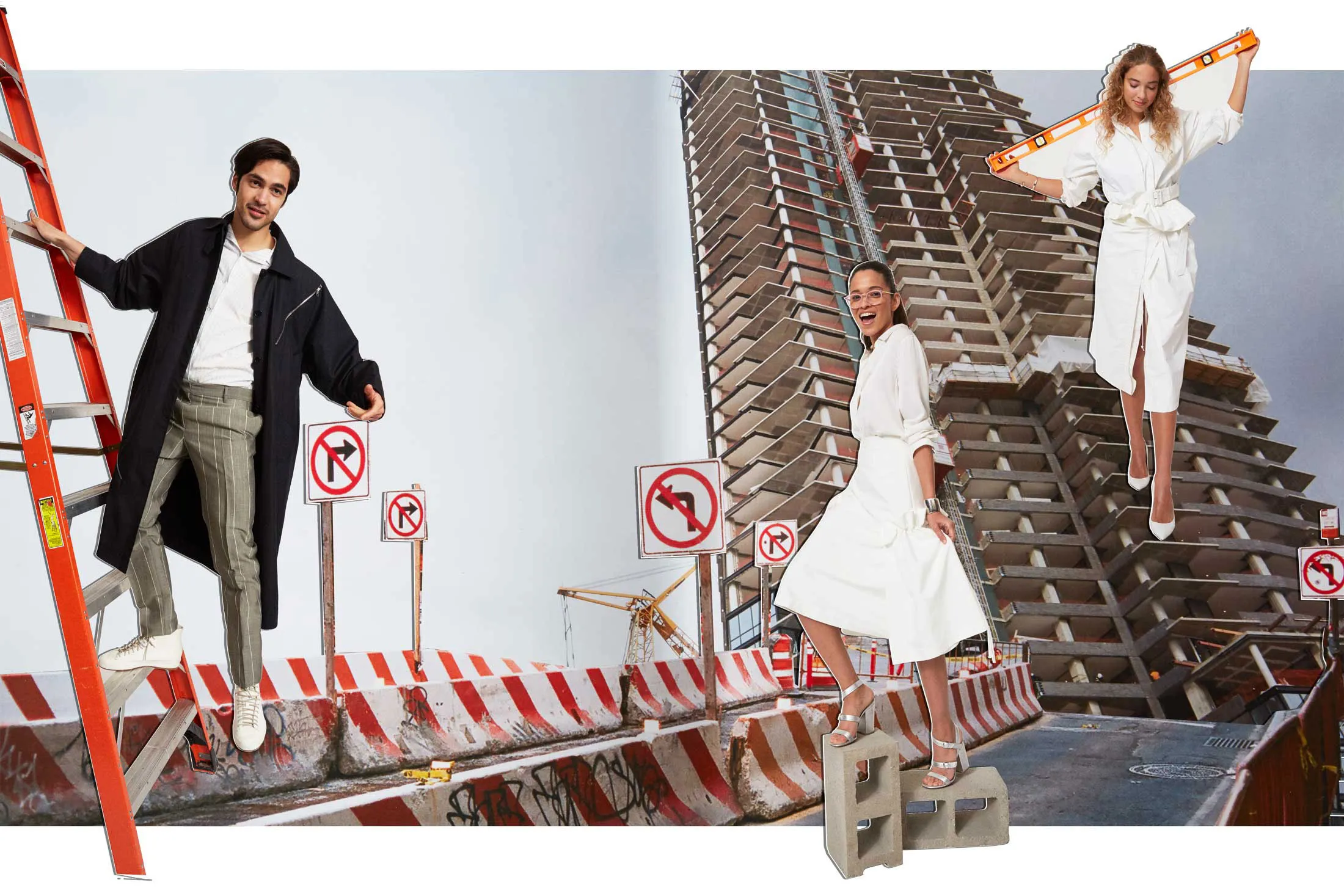 将这些建筑风格融入你的衣橱。通过玩弄层次感来获得这种外观:例如,在高开衩裙子下面穿短裤,或者在修身的 cropped 裤子下面穿飘逸的裙子。寻找功能性细节,如外露的缝线和拉链口袋。