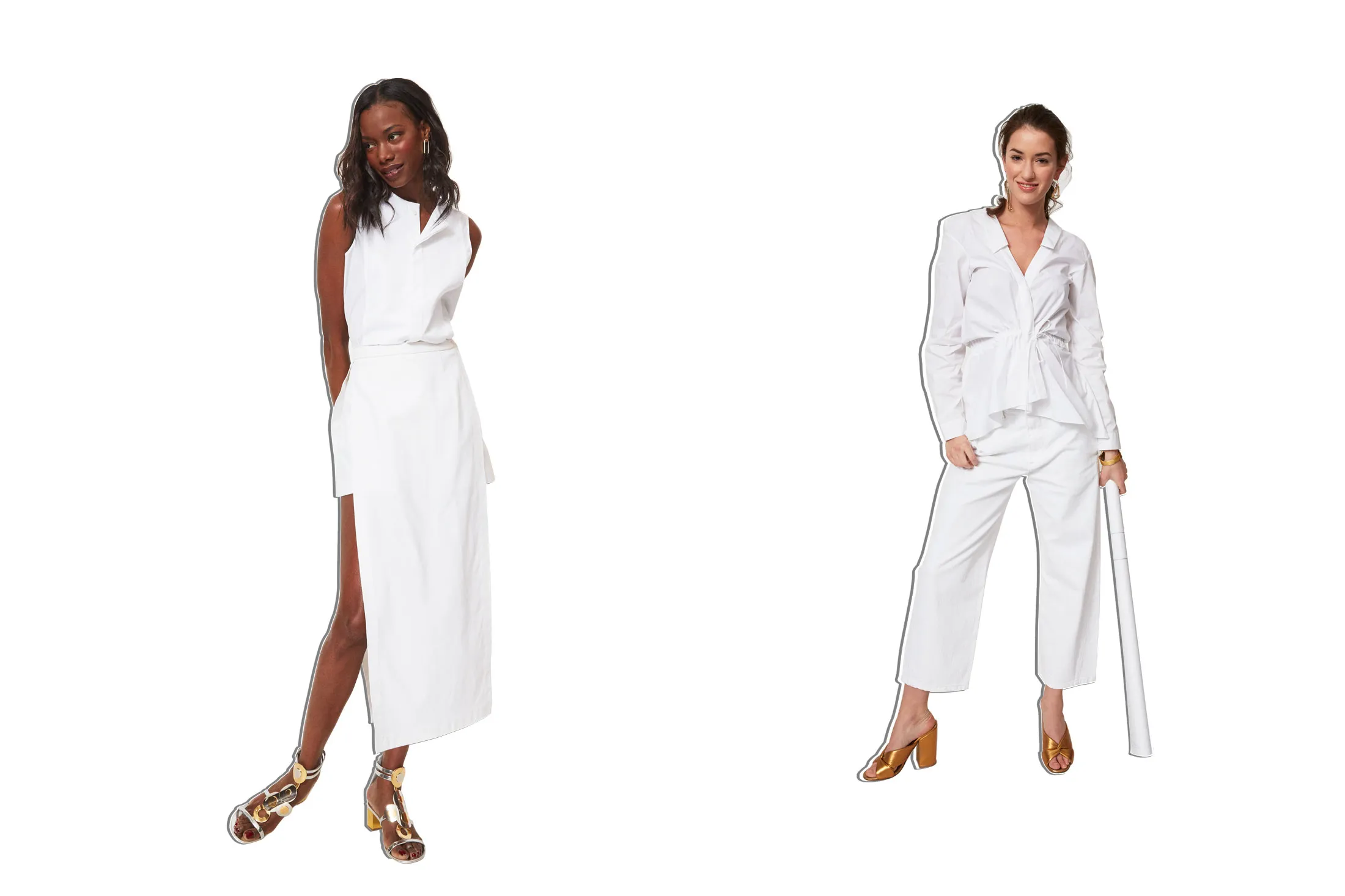 (从左) 运动鞋趋势依然强劲。这双瓷白色的鞋子与粉笔条纹搭配得很好: J.W.Anderson外套,$1,825; j-w-anderson.com. Rag & Bone衬衫,$250; rag-bone.com. Salvatore Ferragamo裤子,$590; ferragamo.com. Feit运动鞋,$660; feitdirect.com. 荷叶边正当流行: Vince衬衫,$295; vince.com. Adeam裙子,$675; Fivestory, 18 E. 69th St., 纽约。Mykita眼镜,$529; mykita.com, Jennifer Fisher手链,$975; jenniferfisherjewelry.com. Alumnae凉鞋,$595; alumnae.nyc. Joseph衬衫,$420,和裙子,$420; joseph-fashion.com. Jennifer Fisher耳环,$445,和手链,$415; jenniferfisherjewelry.com. Cartier手链,$6,750; cartier.com. Aquatalia鞋子,$395; aquatalia.com.摄影师:Eric T. White为彭博商业周刊拍摄### 解构