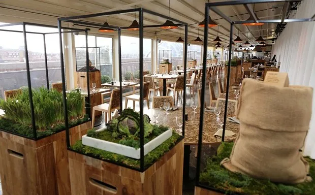 WastED 伦敦的家具是由废弃产品制成的,例如压碎的朝鲜蓟和压缩的布料残余。© Gareth Davies管理食品浪费远不止于吃丑陋的蔬菜,丹·巴伯说。这位厨师于2000年在纽约创办了备受赞誉的蓝山餐厅,上周抵达伦敦,开始讨论如何进一步减少食品浪费的日益关注。当 CityLab 找到他时,巴伯正站在一个答案的中间——一个名为 WastED 伦敦 的新快闪餐厅,位于 Selfridges 百货公司的屋顶。