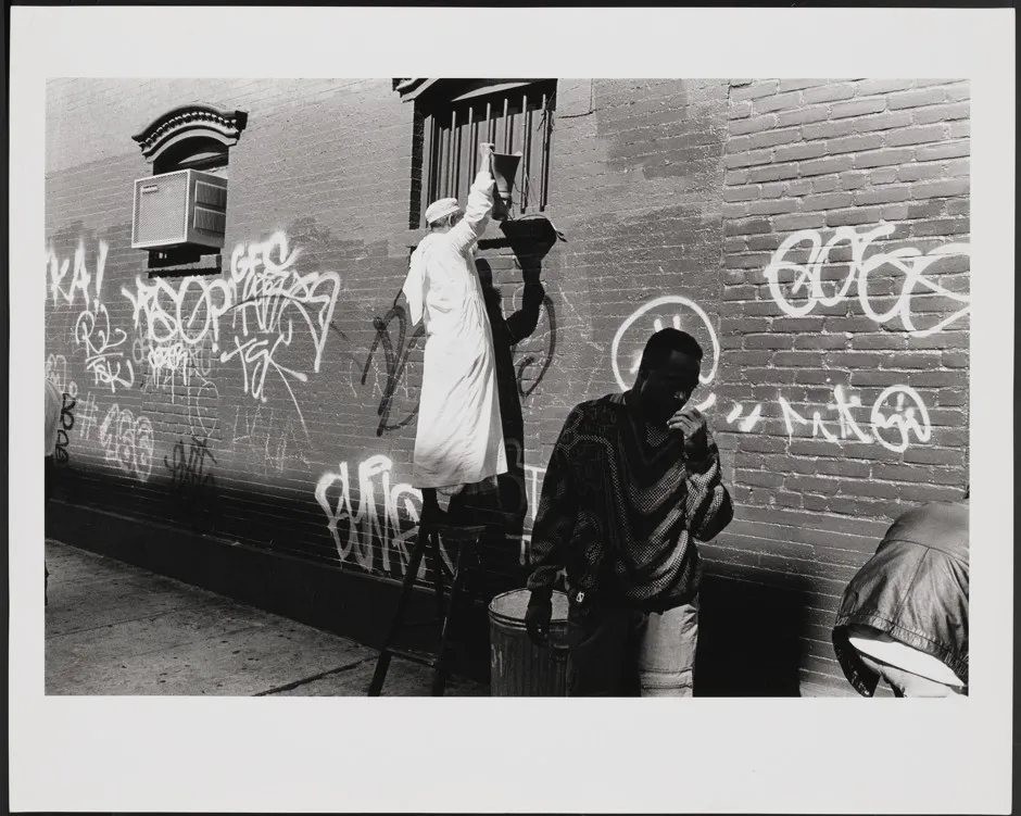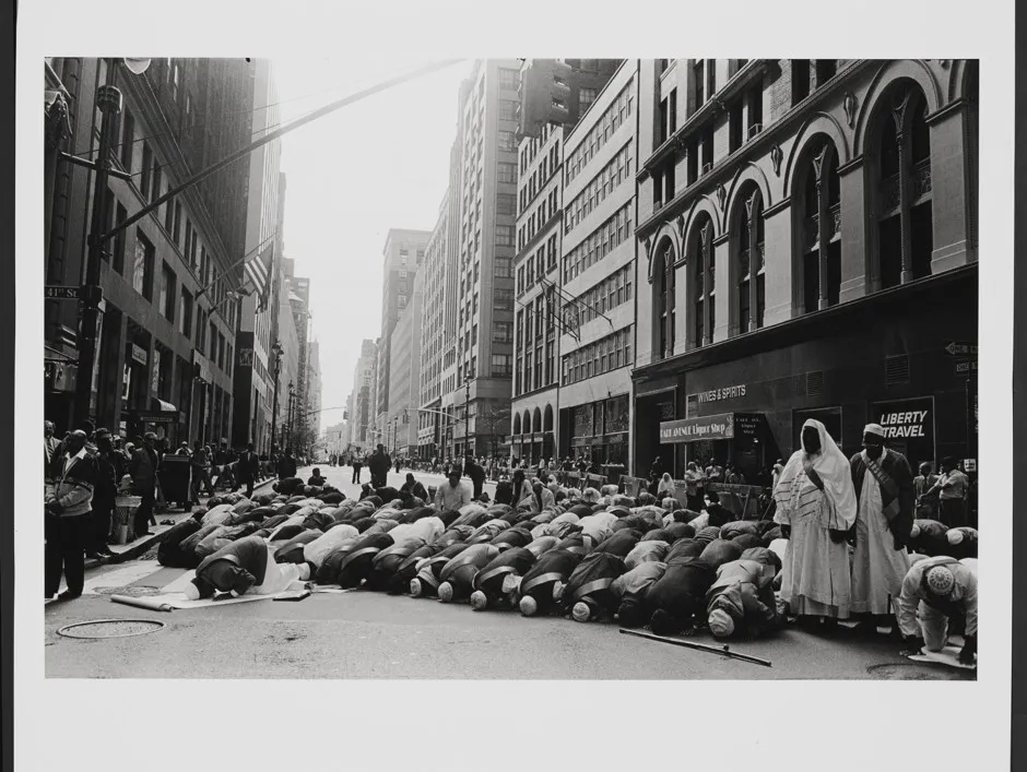 1995年,一名男子在曼哈顿东11街的清真寺外。埃德·格拉兹达/纽约市博物馆提供