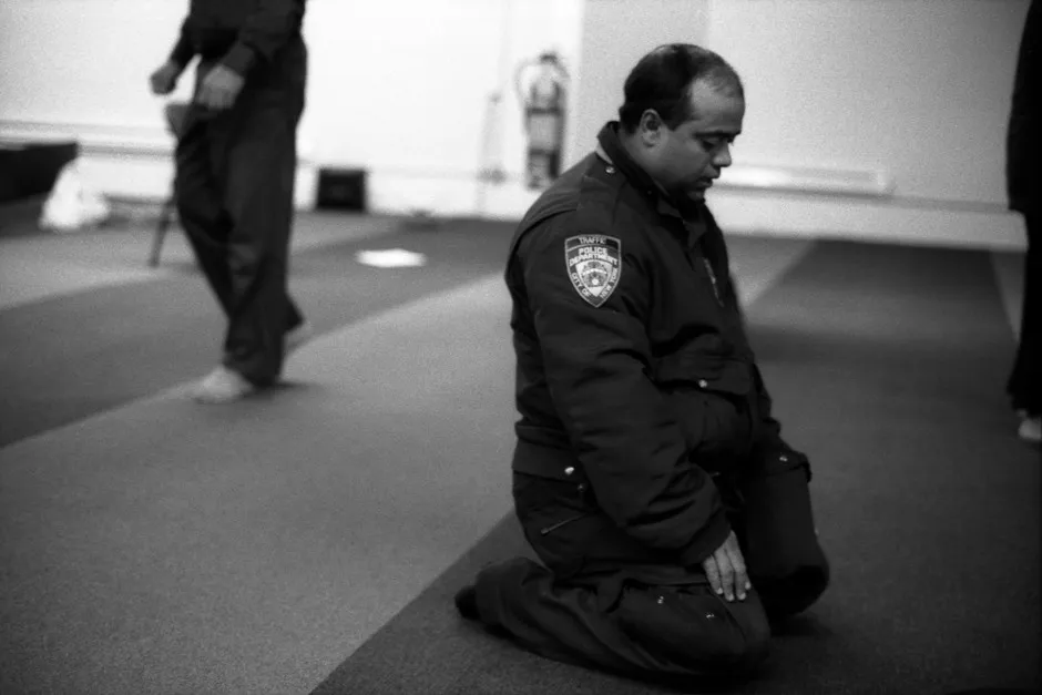 2012年,曼哈顿的NYPD交通警察在祈祷。罗伯特·格哈特/纽约市博物馆提供
