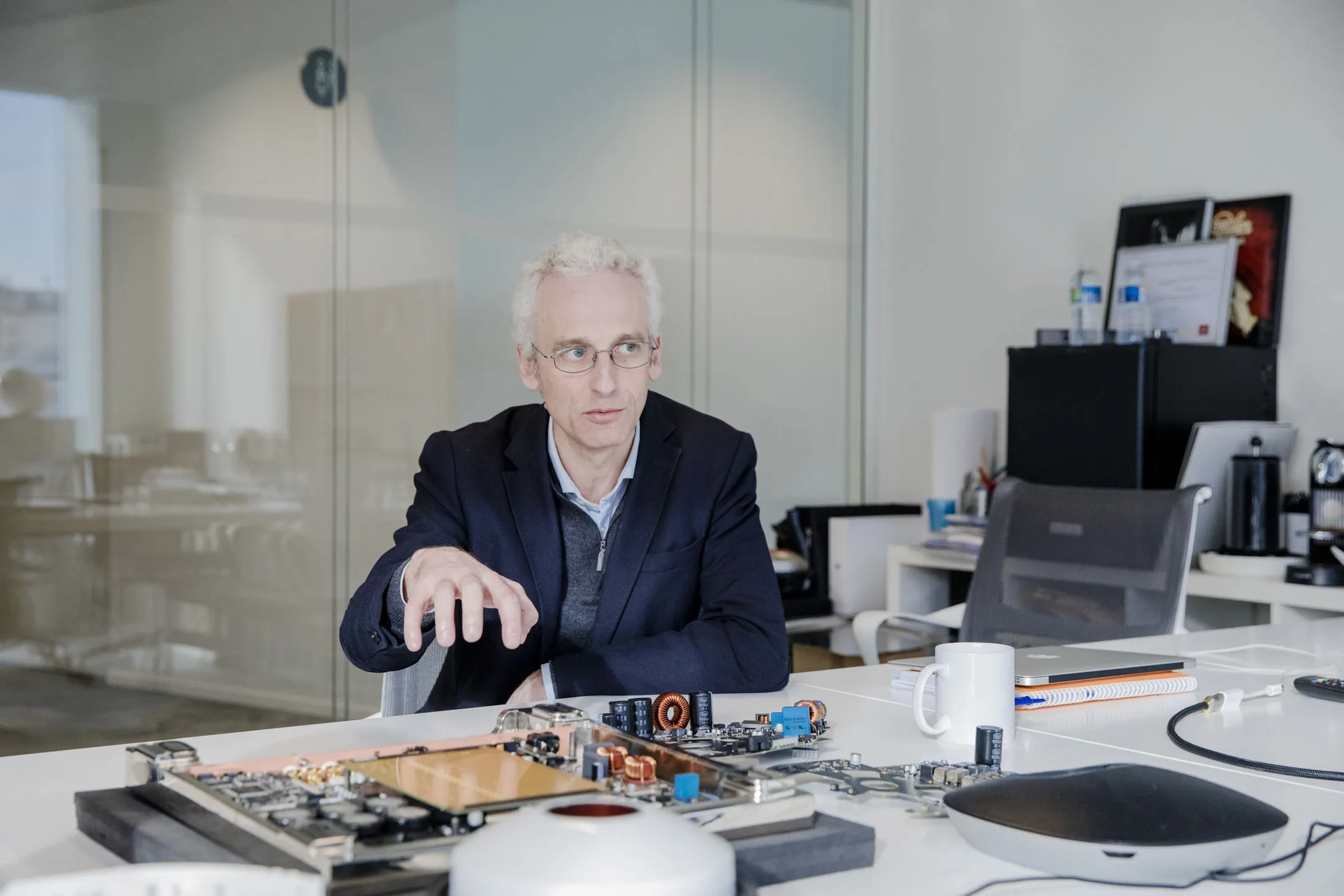 一个爱好开始蓬勃发展。卡梅尔的朋友们开始委托他为他们制作音频设备。但当卡梅尔在1990年代中期加入北电网络时,他能够在日常工作中使用最先进的技术。“我的电子热情在工作中得到了满足,”他告诉我。当2000年代初互联网泡沫破裂时,卡梅尔的大多数项目被取消。他在日记中记录了专注于音频的研发。在这段时间里,卡梅尔开发了所有Devialet产品中所采用的技术:模拟数字混合技术。