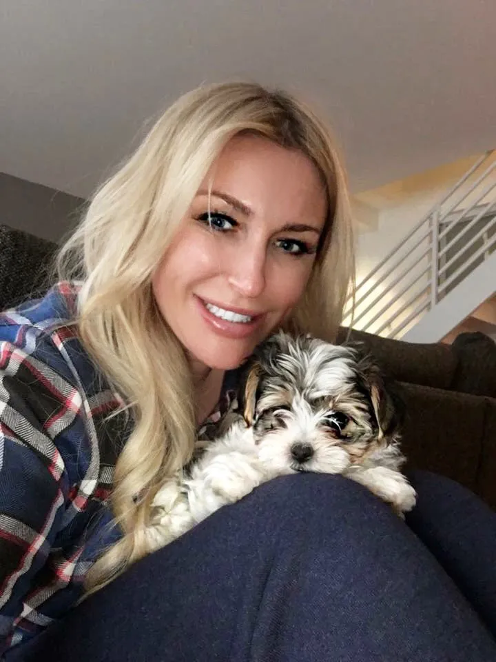 Kristin Smith和她的Morkie,Monsieur Fluffington。来源:Smith在其网站上,Wags Lending提供了来自热情但匿名的宠物主人的满意推荐,他们使用租赁融资购买小狗。当被要求提供一位满意的客户进行采访时,公司建议了大学生Elizabeth Harvey和Reno美容院老板Kristin Smith。