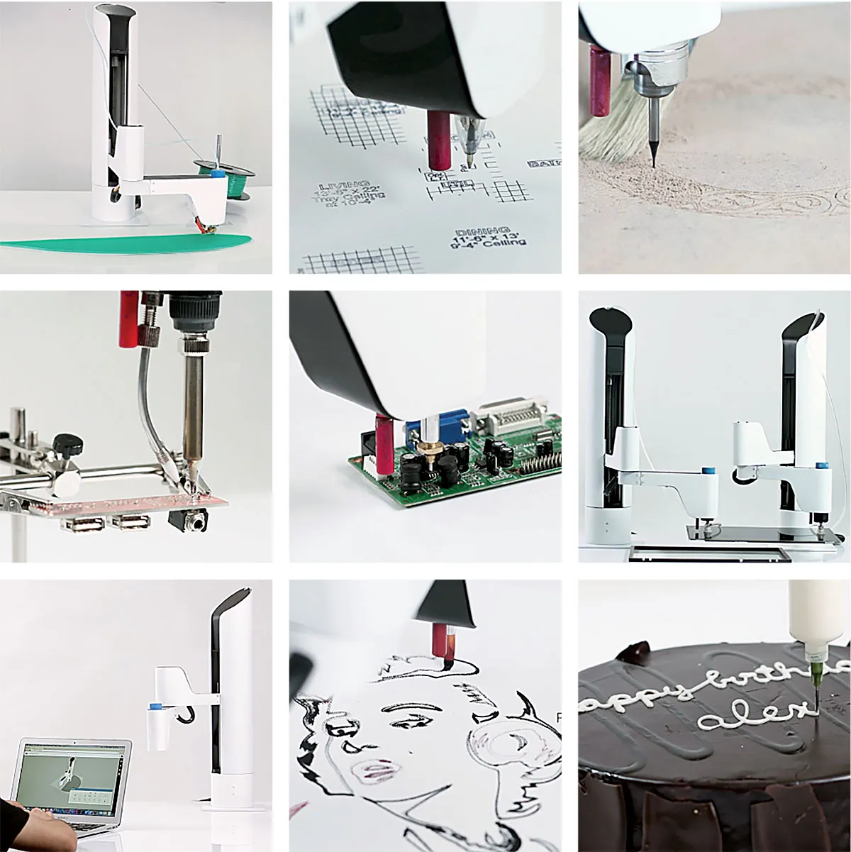 形式与功能Makerarm的机器人制造系统结合了十多种制造机器的功能——3D打印、铣削、激光雕刻、焊接、乙烯基切割、电路板组装——并适合放在桌面上。