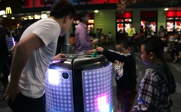 “我们想把城市变成快乐的游乐场,以激励普通人更积极的行为。”例如,21世纪版的垃圾篮球是 TetraBIN,一个街边垃圾桶,将扔垃圾的行为变成一种半数字化的运动。由澳大利亚设计公司 城市感知 创建,这个四孔容器的内部装有传感器,可以激活包裹LED的外壳。如果你在正确的时刻将垃圾准确投掷,你可以“推动”类似俄罗斯方块的块到位,或者给狗喂骨头,具体取决于垃圾桶设置的任天堂风格游戏。