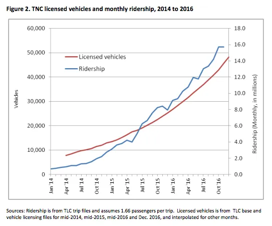 有几件重要的事情需要注意:并不是每个人都相信霍兰的会计。布鲁斯·沙勒(Bruce Schaller)是一位交通和出租车服务顾问,曾在纽约市交通局担任高级职务,他对优步在纽约市的表现进行了广泛的分析(与美国其他城市相比,纽约市获得了更多关于打车和出租车服务的数据)逐年进行。平均优步车费比传统出租车费低约20%。沙勒表示,这可能足以实现盈利。像许多事情一样,优步在大苹果的行程费用比其他城市要高得多,但沙勒想知道,在较便宜的地方(更便宜的保险、维护、停车、汽油等)司机的边际车辆成本较低是否能够弥补差距。他的关于优步在纽约市所有交通模式中份额稳步增长的最新报告也表明,随着时间的推移,对其服务的需求只会增长(至少在那座城市)。