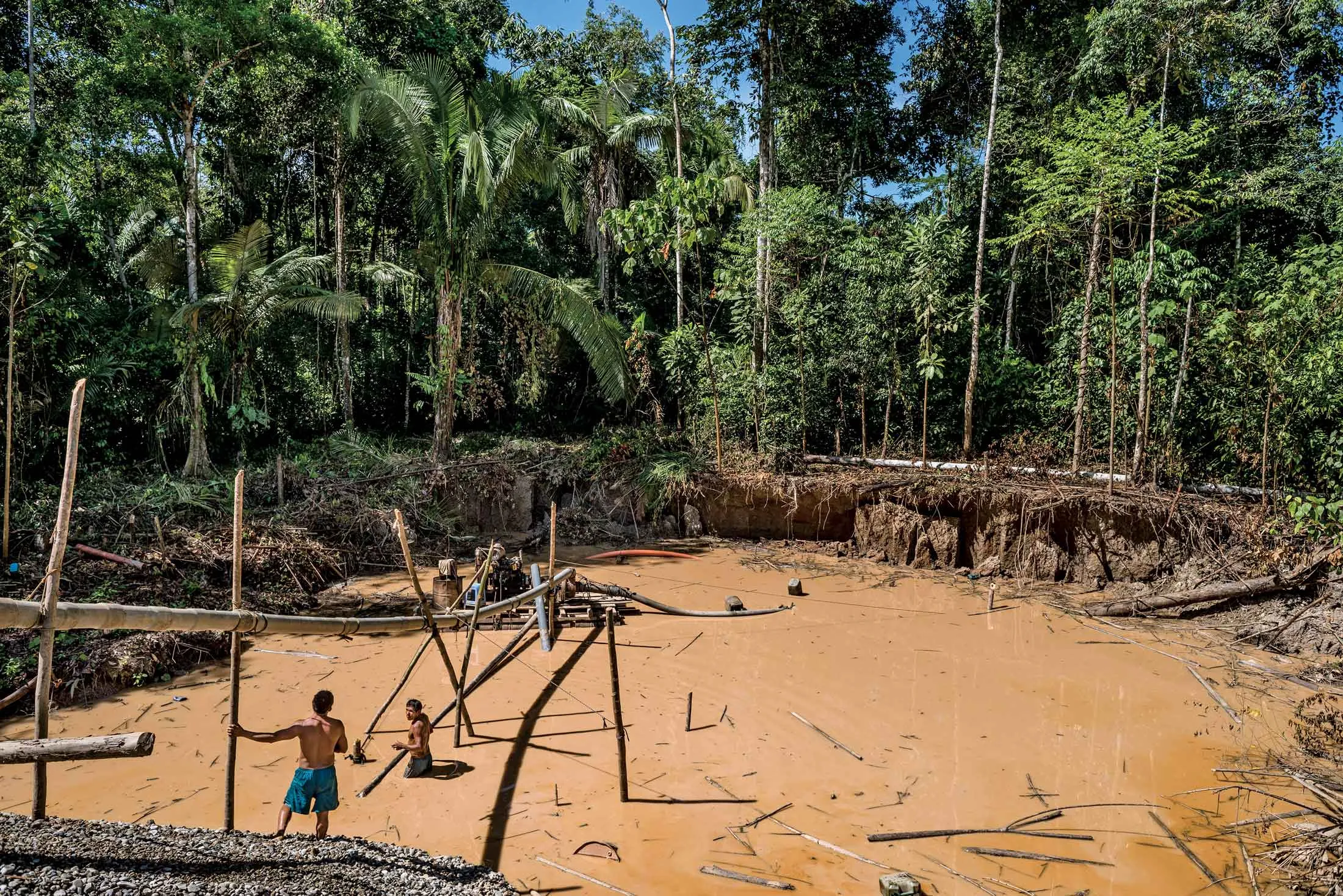 秘鲁的一座非法矿山。这种采矿的主要工具是消防水管和汞。摄影师:Tomas Munita/《纽约时报》/Redux令他们越来越惊讶的是,警方从未找到他们认为支持和保护维尔切斯的更大组织。根据他们的判断,似乎没有更大的鱼。最终,在2016年8月,他们逮捕了他。调查人员表示,他们记录了8000万美元的黄金运输,这些黄金通过他在智利和迈阿密建立的八家空壳公司流转——他们认为还有更多。他们以敲诈勒索、走私、海关欺诈和洗钱的罪名起诉了维尔切斯和四名同伙,包括他的妻子和她的父亲。没有人受到审判,这个案件仍然开放。维尔切斯的妻子和岳父通过他们的律师拒绝发表评论。如今,维尔切斯与妻子住在圣地亚哥一个破旧地区的公寓里;他在晚上10点到早上6点期间被监禁在家。